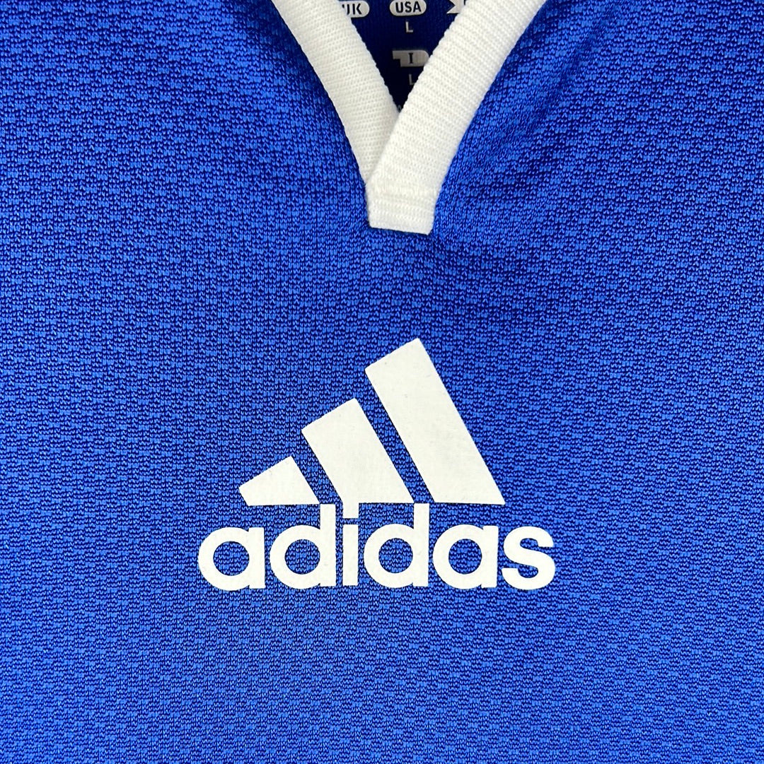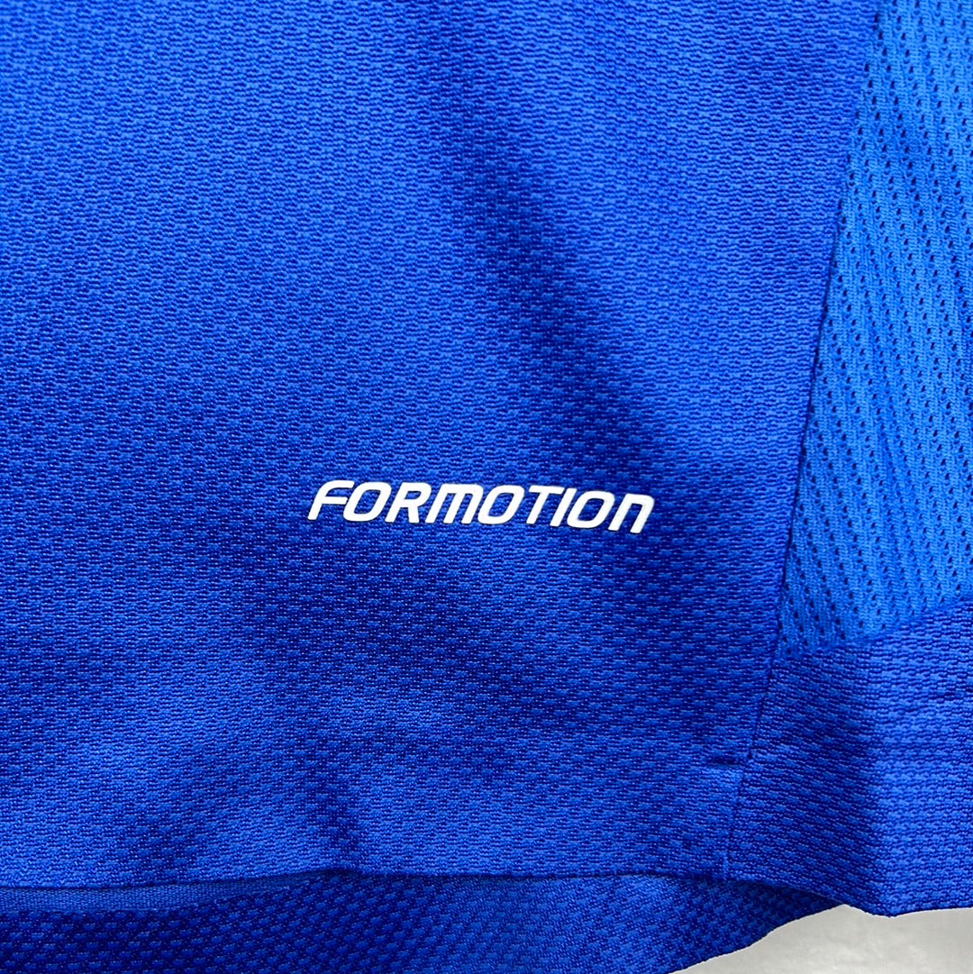 Player Issue Details: The shirt is an Adidas player shirt. The Adidas logo is printed. The collar is hand-stitched down at the back. It is a Formotion players shirt.