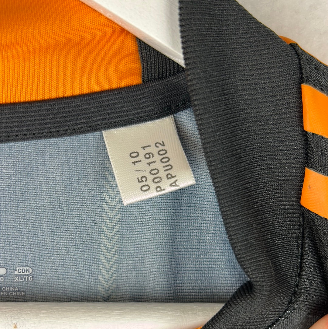 Player Issue Details: The shirt is an Adidas player issue short for this season. The Adidas logo and 3 stripes are printed on the shirt. The inside labels are lower down than a standard replica. The print is in the correct slightly large player-sized print.