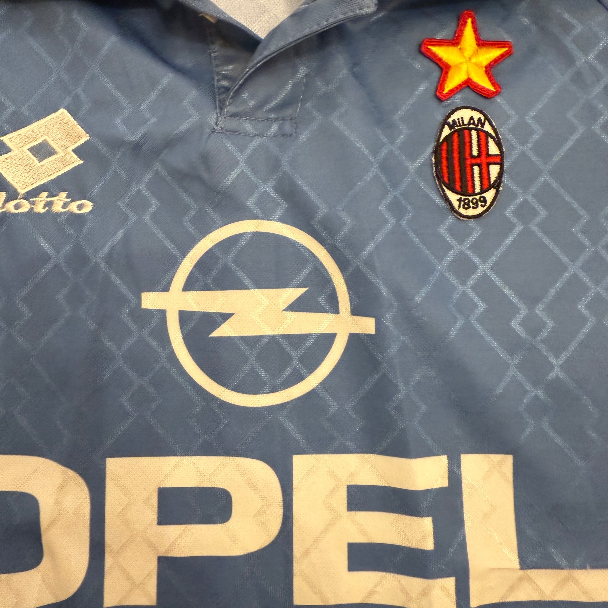 Shirt info: An AC Milan fourth shirt from 1995/1996. A memorable shirt for Milan. It is a very rare blue shirts from AC Milan.