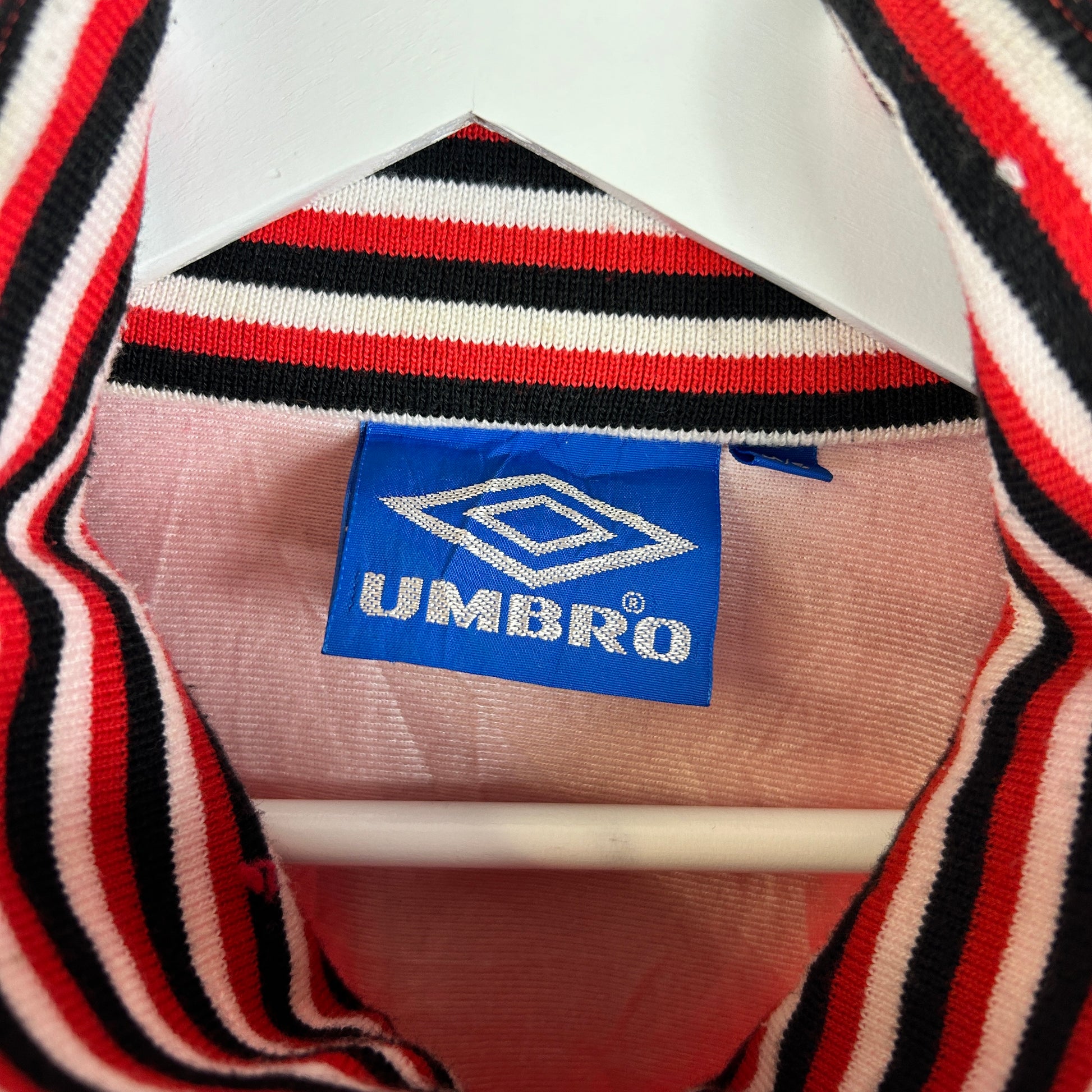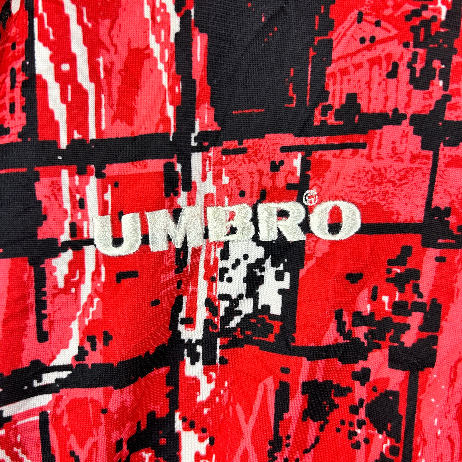 Info: An absolute classic England jacket. The jacket has the England badge in the material on the main part of it. There is mesh sections down the sleeves with the Umbro logo underneath.