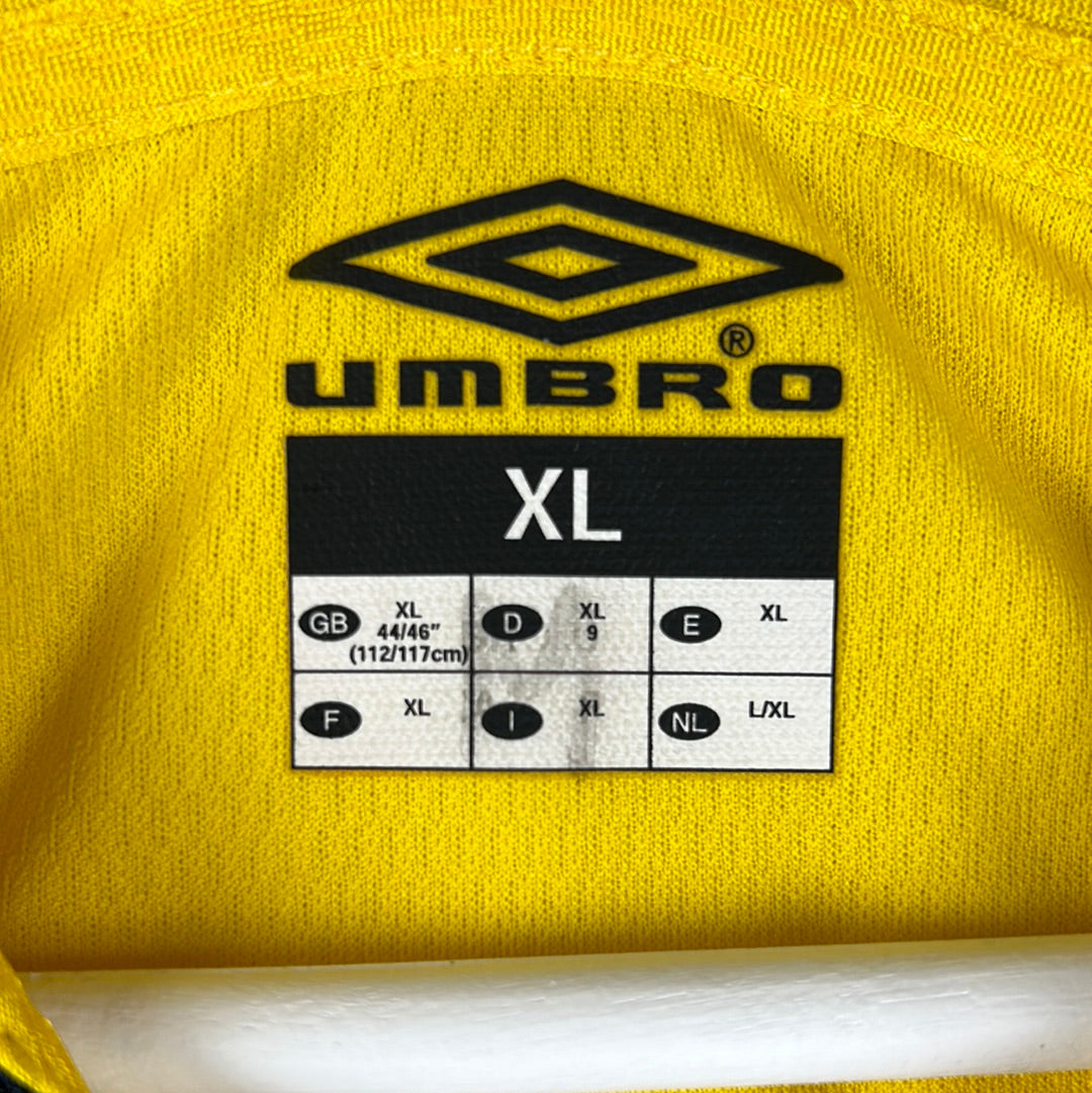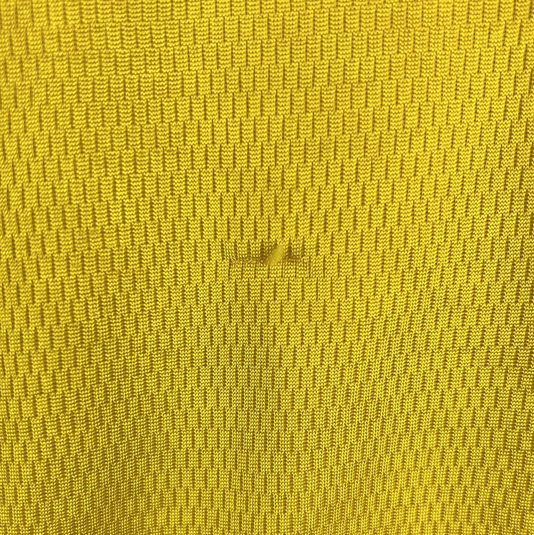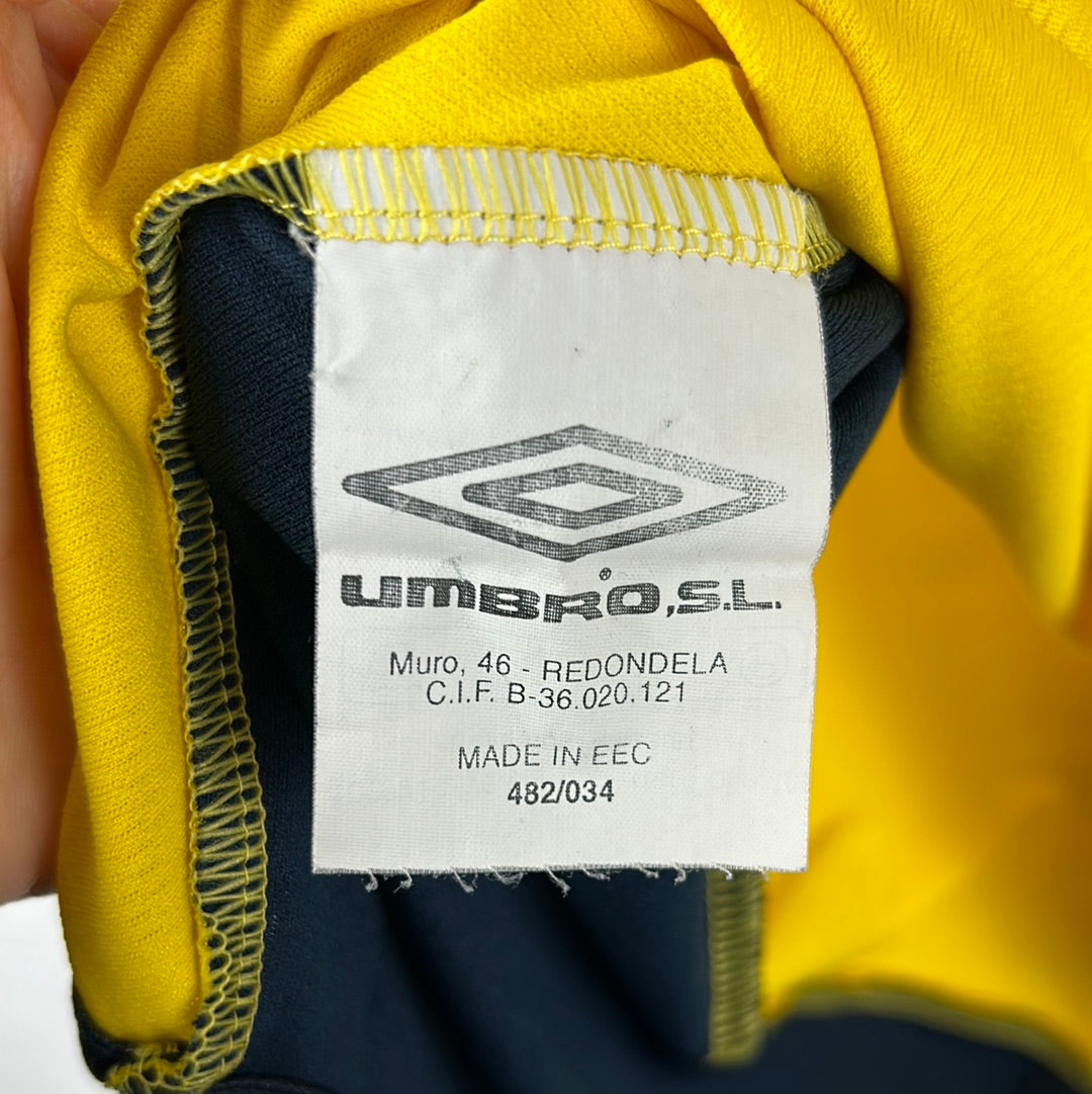 Shirt info: The yellow away shirt Alaves wore during the 2002-2003 La Liga season. This particular shirt was issued to Tellez during the away La Liga match on 6/10/2002 vs Real Madrid, in which they lost 5-2. The Alaves badge and Umbro logo are embroidered and the 'Artium Alava' sponsor is raised felt. The 'Alava.net' and La Liga sleeve patches are printed. 'Tellez 6' is printed on the back in black flock.