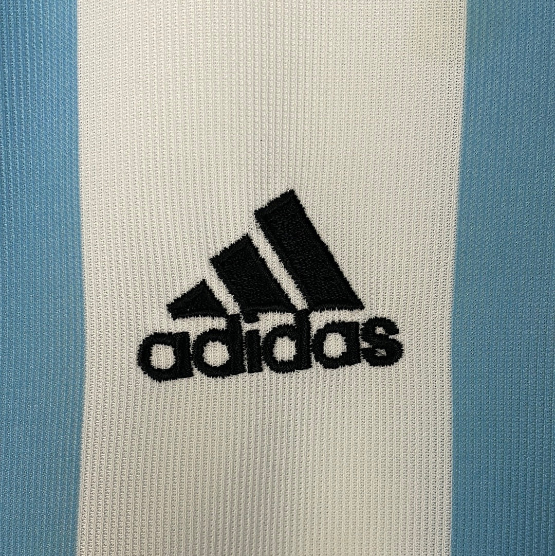 Shirt info: The Argentina home shirt for the 2002 World Cup. This is a classic Argentina look with the gold badge. The Adids logo is embroidered on black.