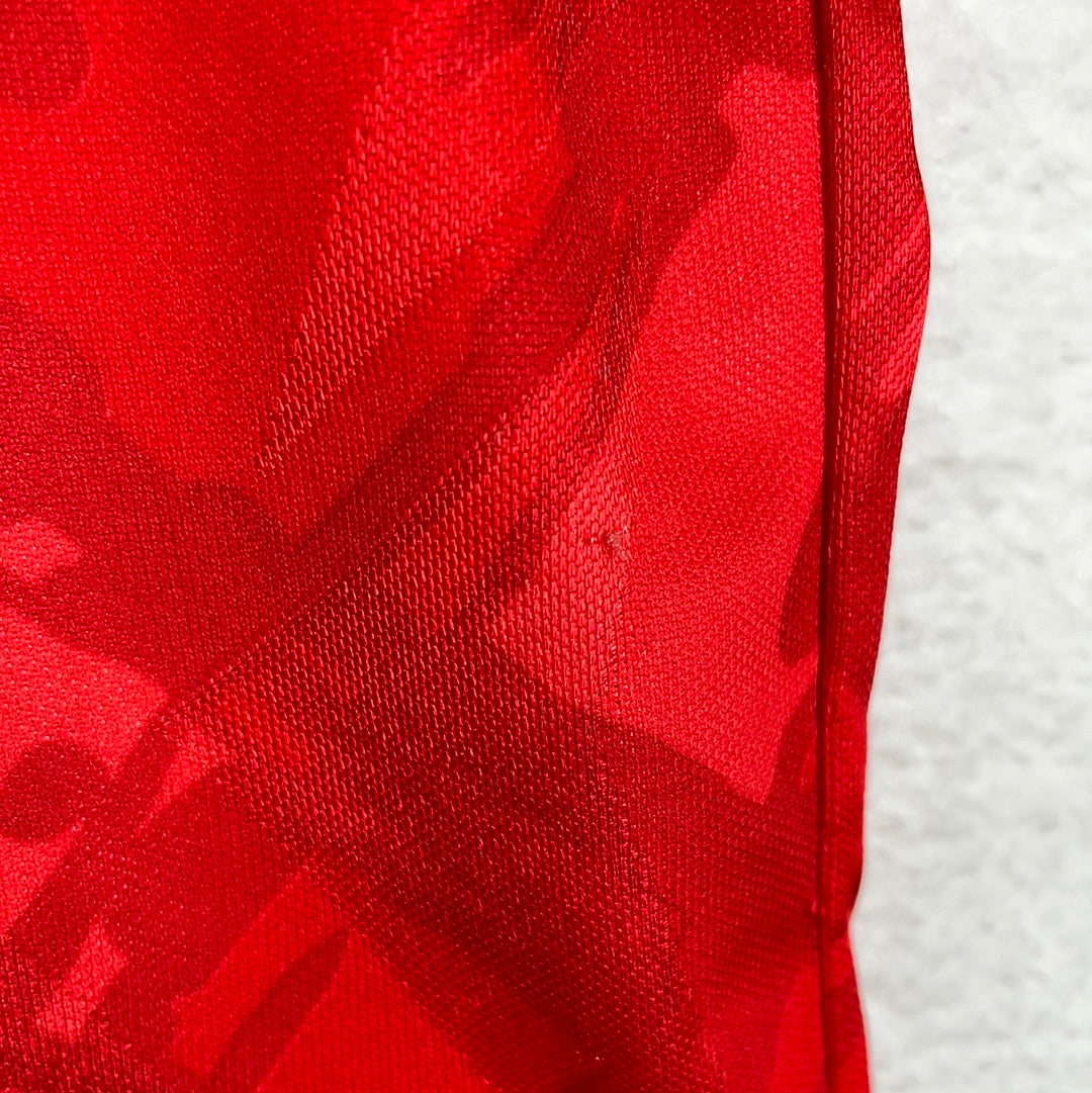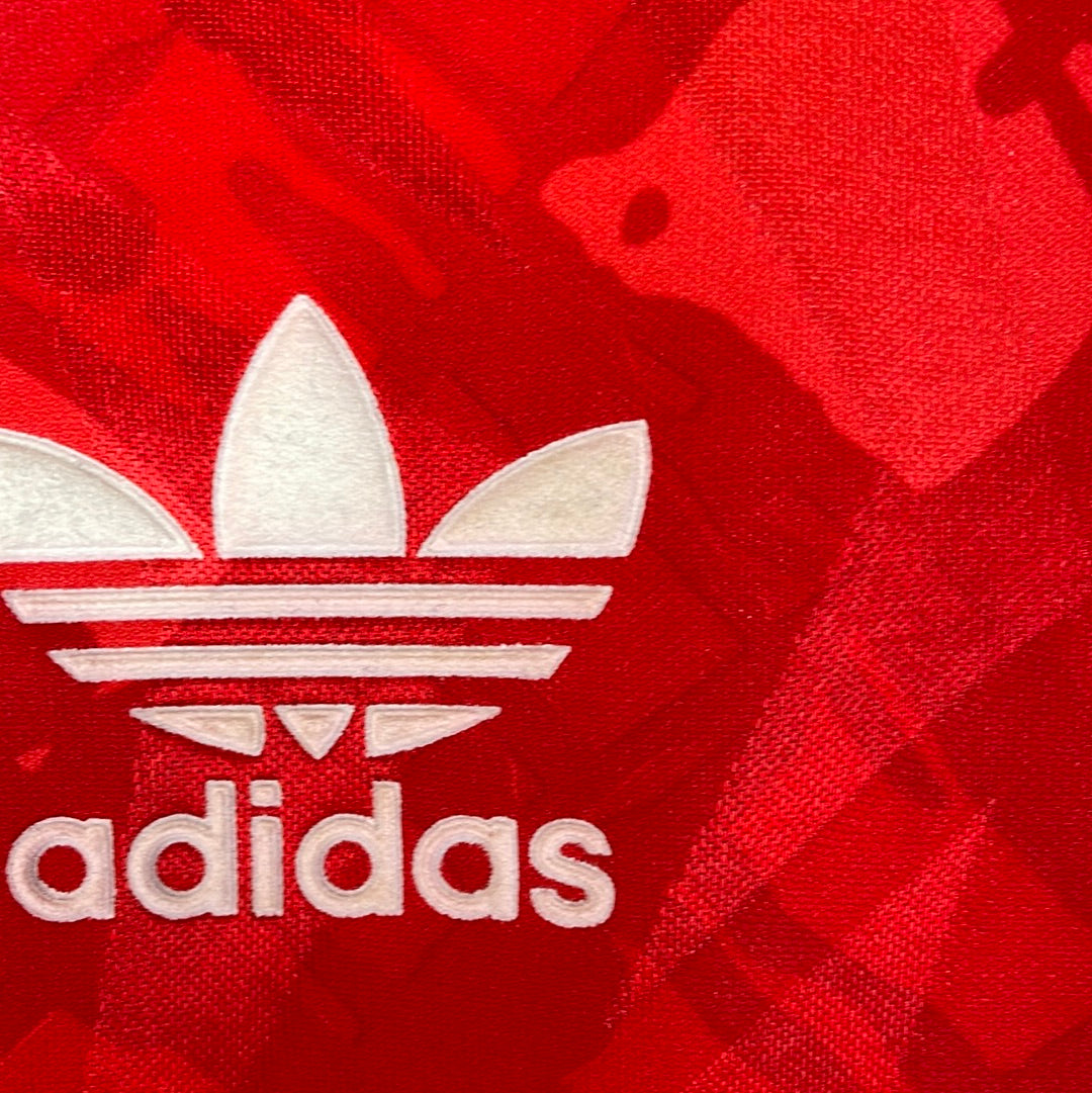 Shirt info: The home jersey worn by Arsenal during the 1991/1992 and 1992/1993 seasons embodies a classic Arsenal aesthetic, featuring the iconic JVC sponsor. Characterized by its distinctive patterned red design with contrasting white sleeves, the jersey is adorned with AFC embroidery on the collar, encapsulating the traditional charm of the club's attire during that era.
