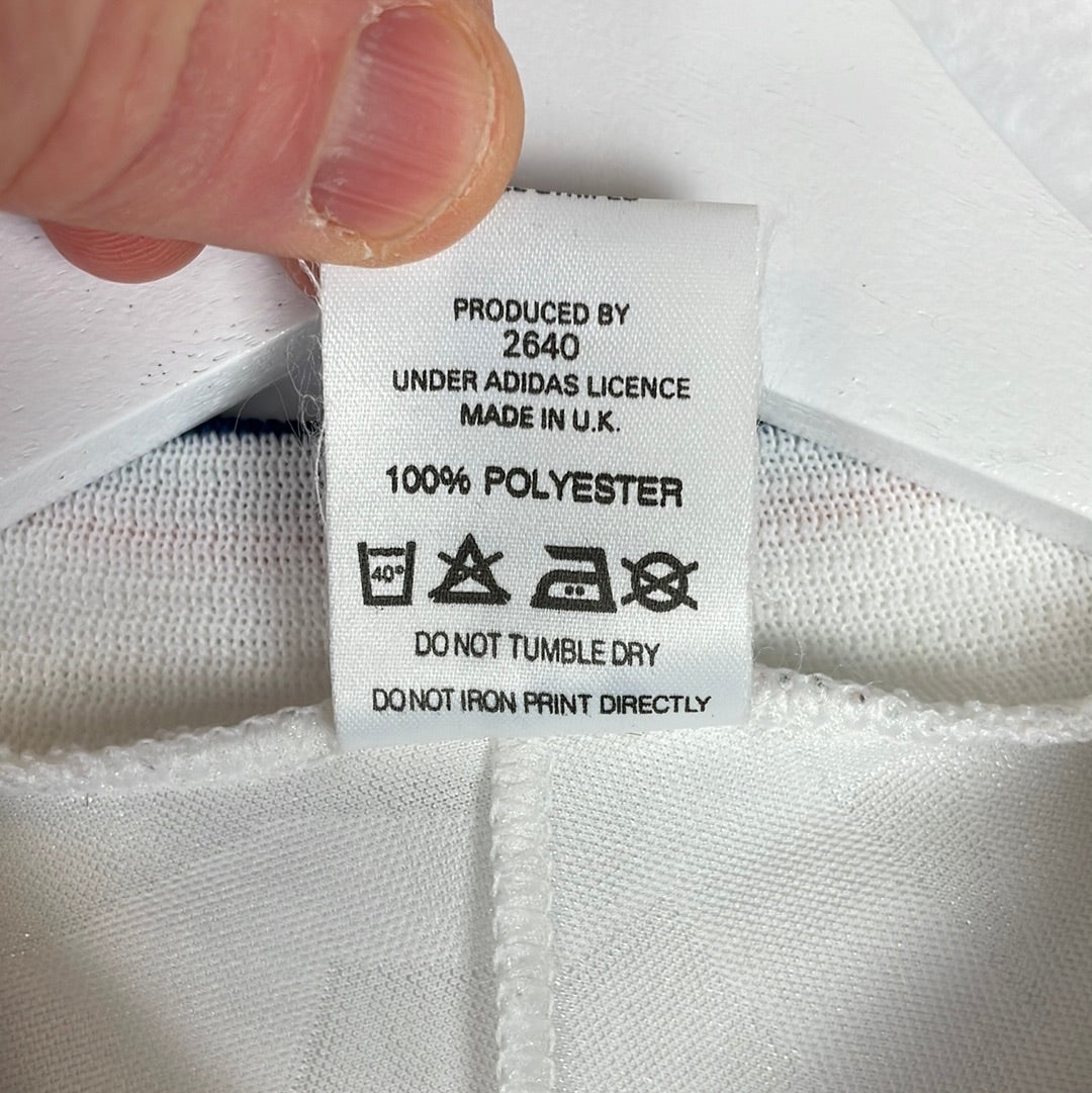 Condition Details: The shirt is in very good condition. There is an odd tiny pick in the front and one small area of wear in the lower hem. The JVC, Arsenal badge & Adidas logo are all in excellent condition. The size label shows very little sign of wear.
