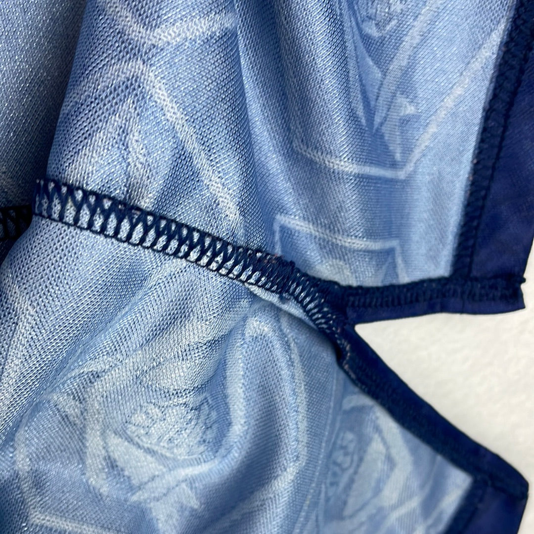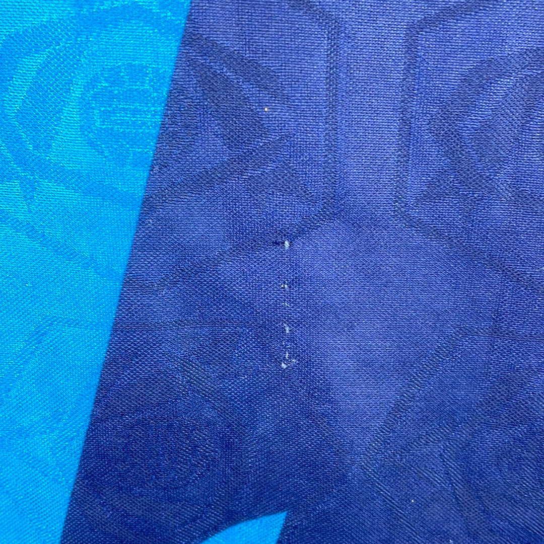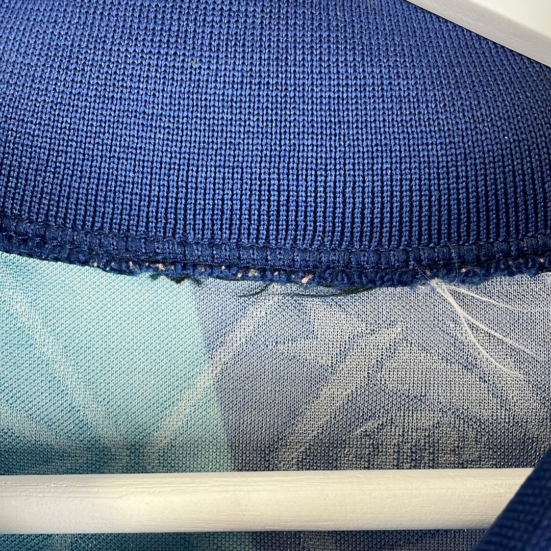 Shirt info: A funky lightning bolt strike shirt. This has contrasting light blue collar and sleeve patches. As well as the lightning strikes it has Gunners in the material stripes also.