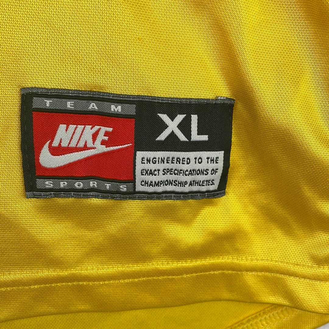 Shirt info: The away goalkeeper shirt for the 1997/1998 season. The shirt has a front XL Nike patch and a blue JVC sponsor.