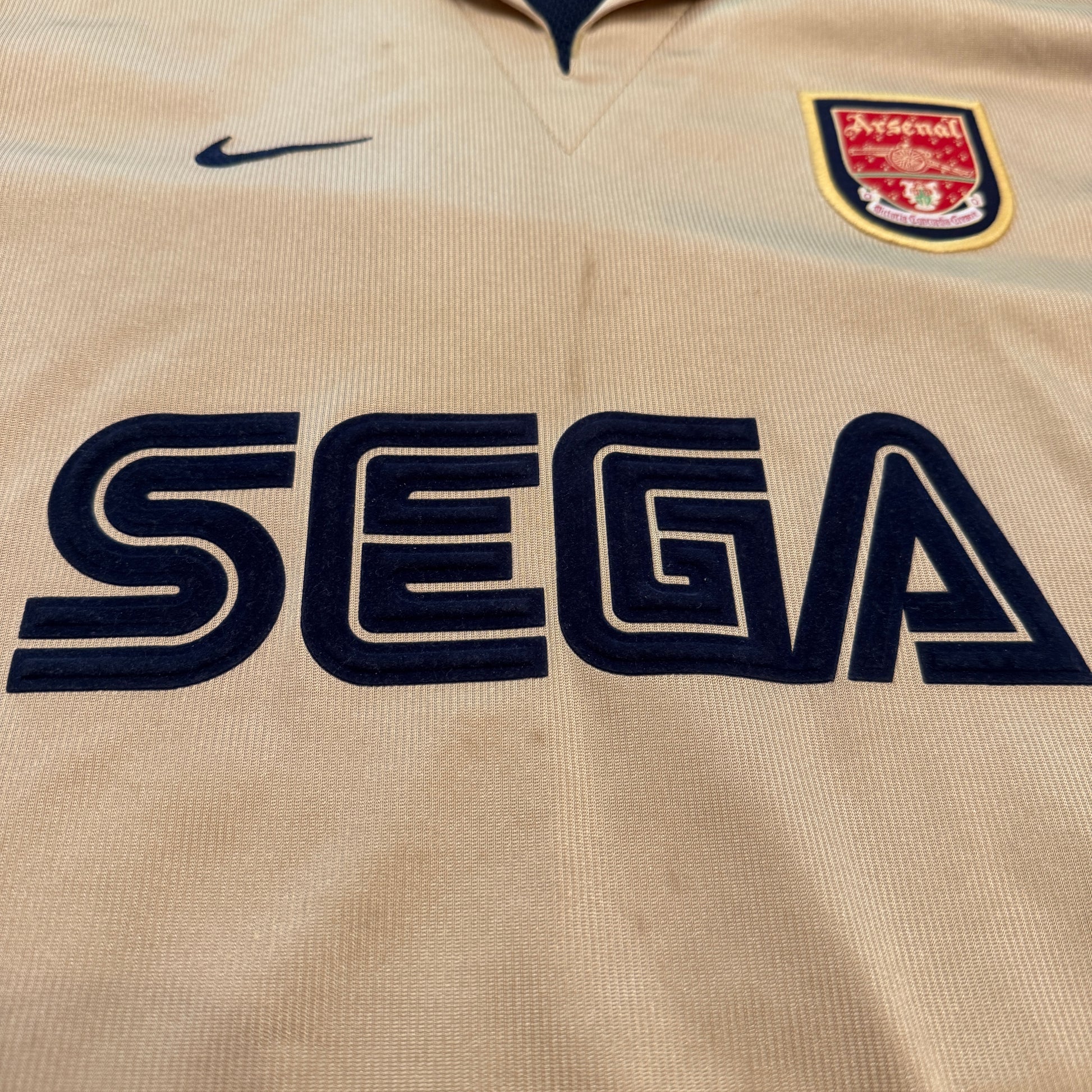 Shirt info: The gold away shirt for Arsenal in the 2001/2002 season featuring the SEGA sponsorship. This is a very collectable Arsenal shirt.