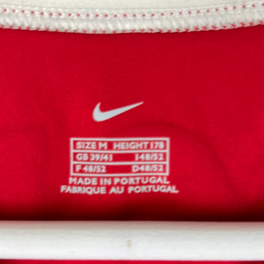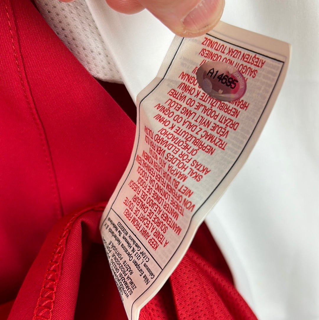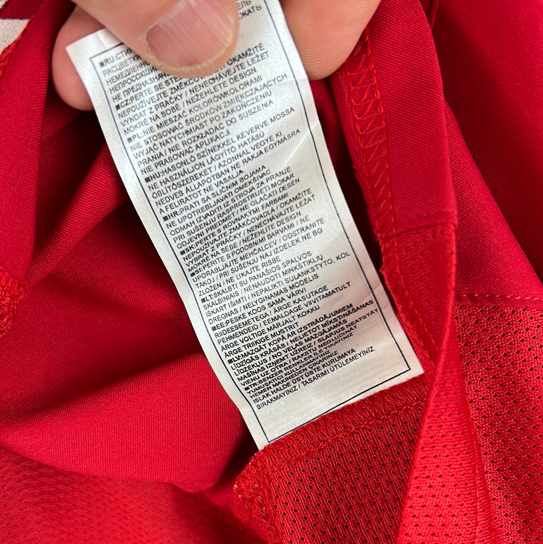 Shirt info: The shirt has the player issue details of the larger-sized print and patches. It has the correct internal labels for a player shirt. It has a player-sized Champions League patch on one sleeve.
