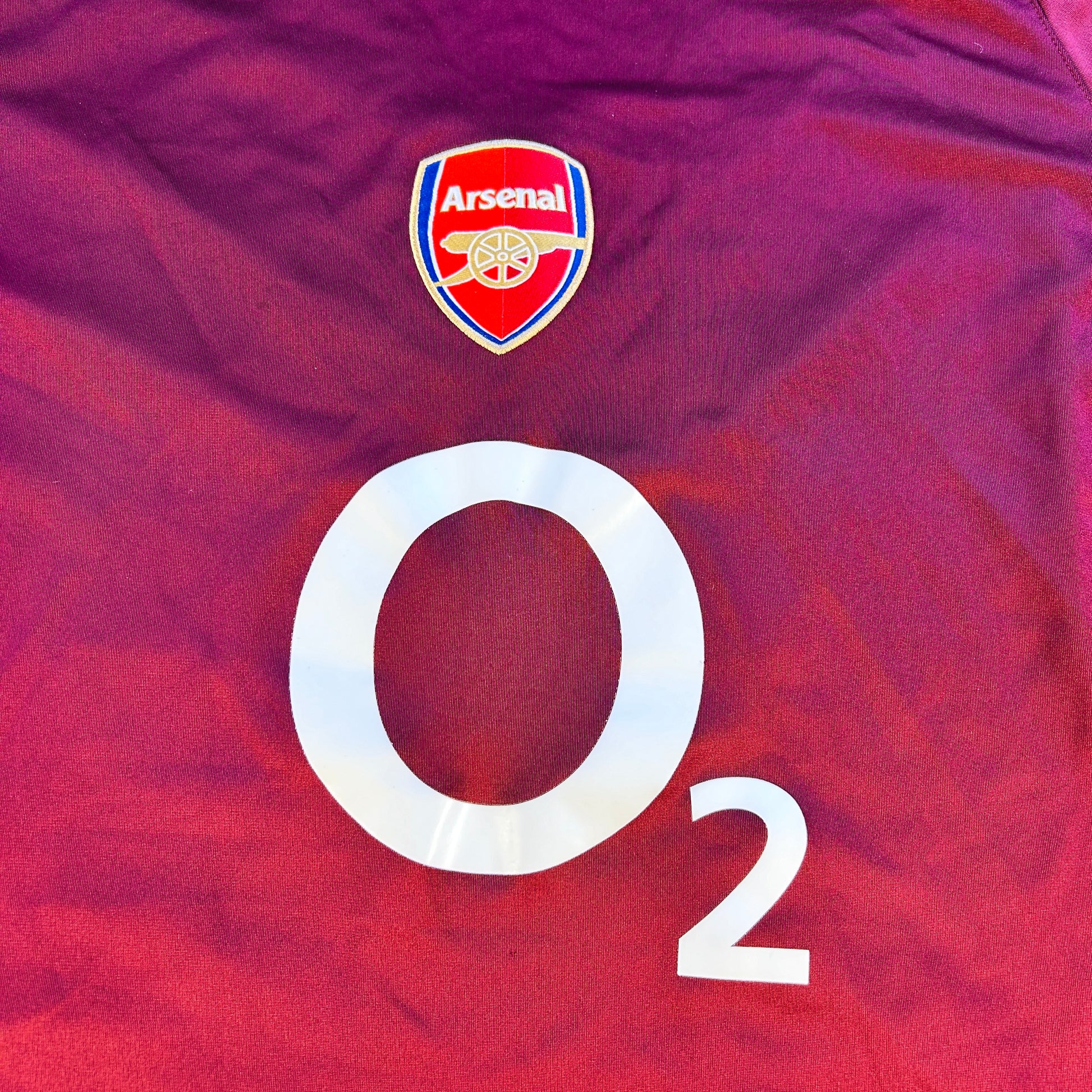 Shirt info: This shirt is a rare Arsenal T90 training shirt in burgundy from the 2005/2006 season. It follows the T90 training template.