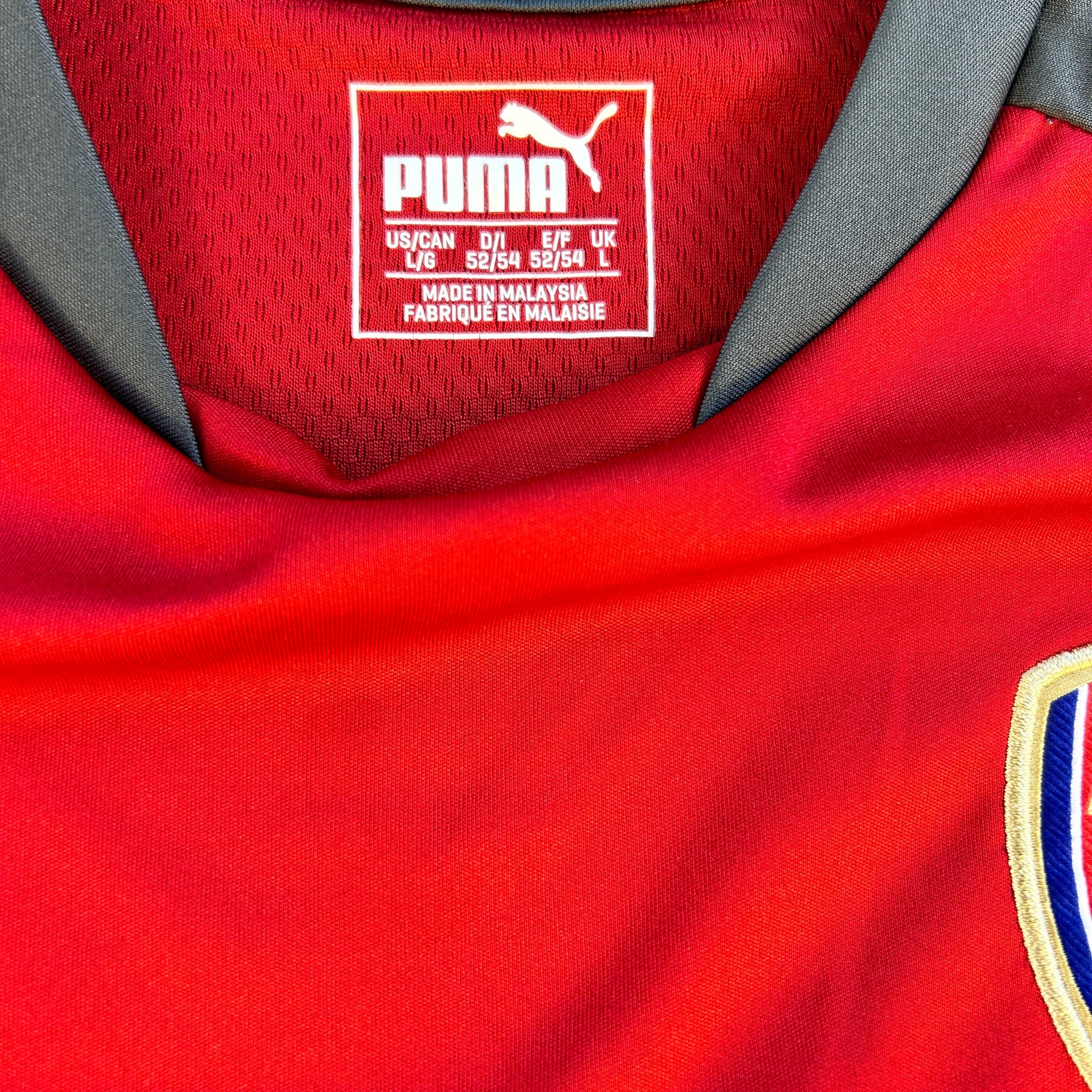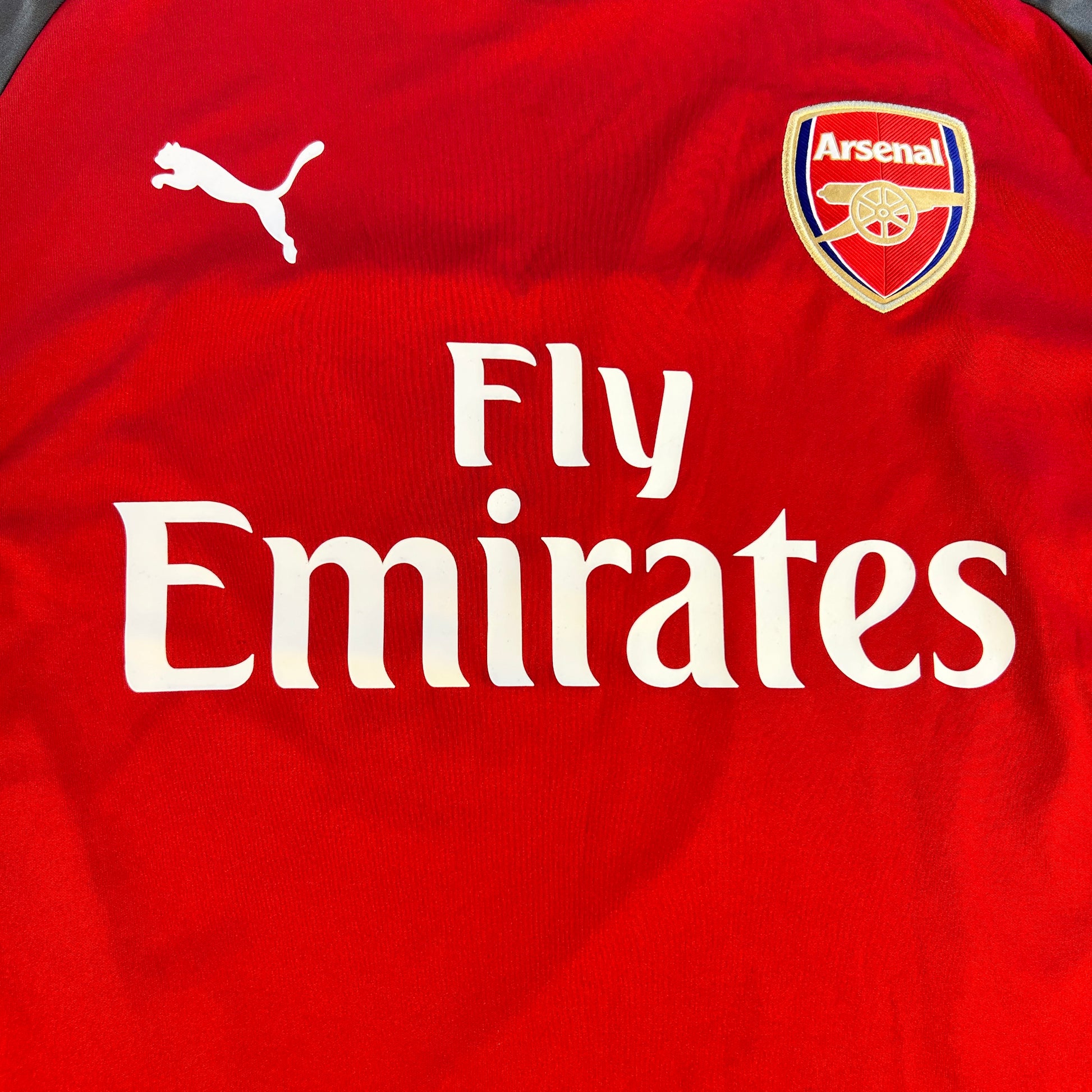 Shirt info: This shirt is an Arsenal Puma training shirt/ pre-match shirt from 17/18. It is similar to the home shirt with a printed pattern on the sleeve.