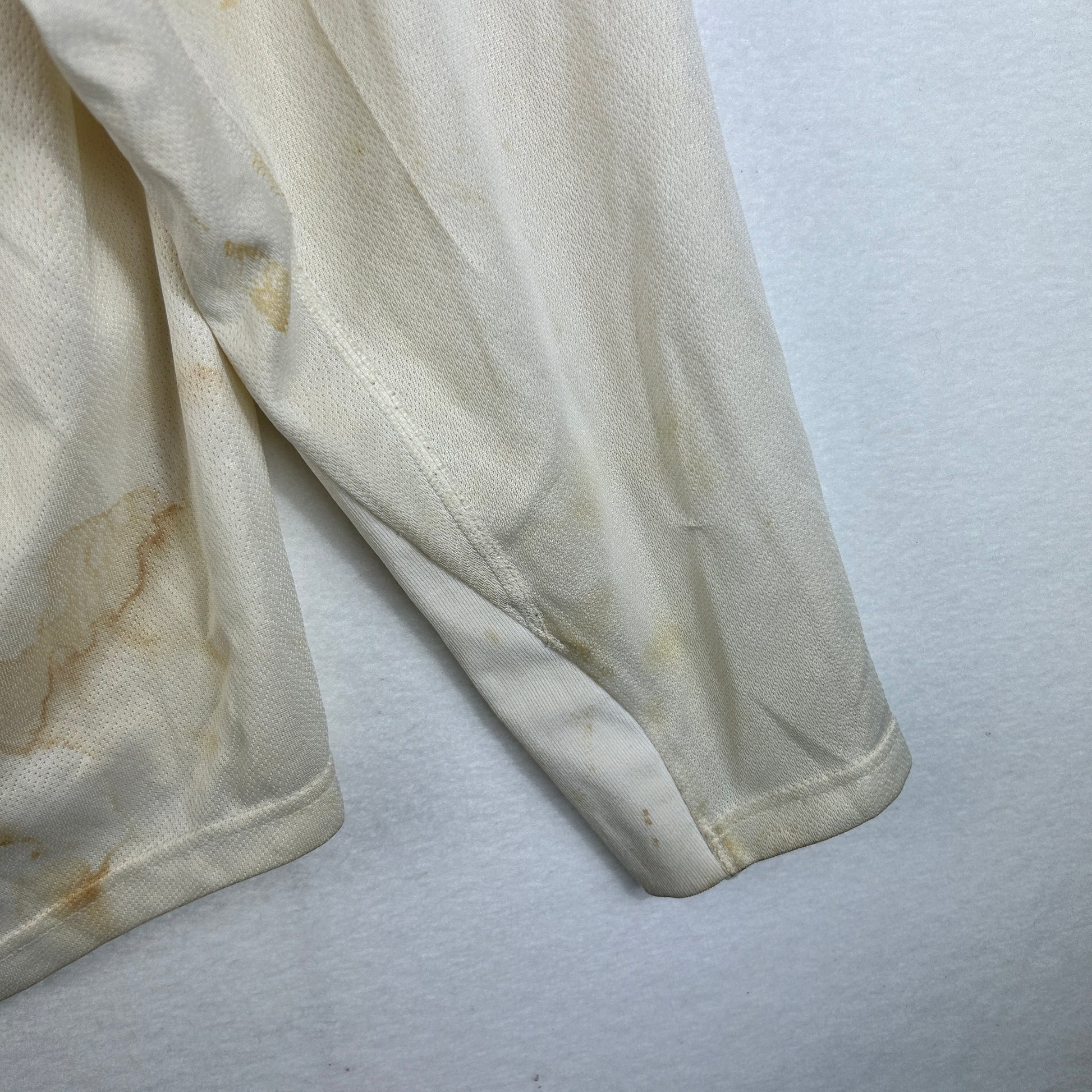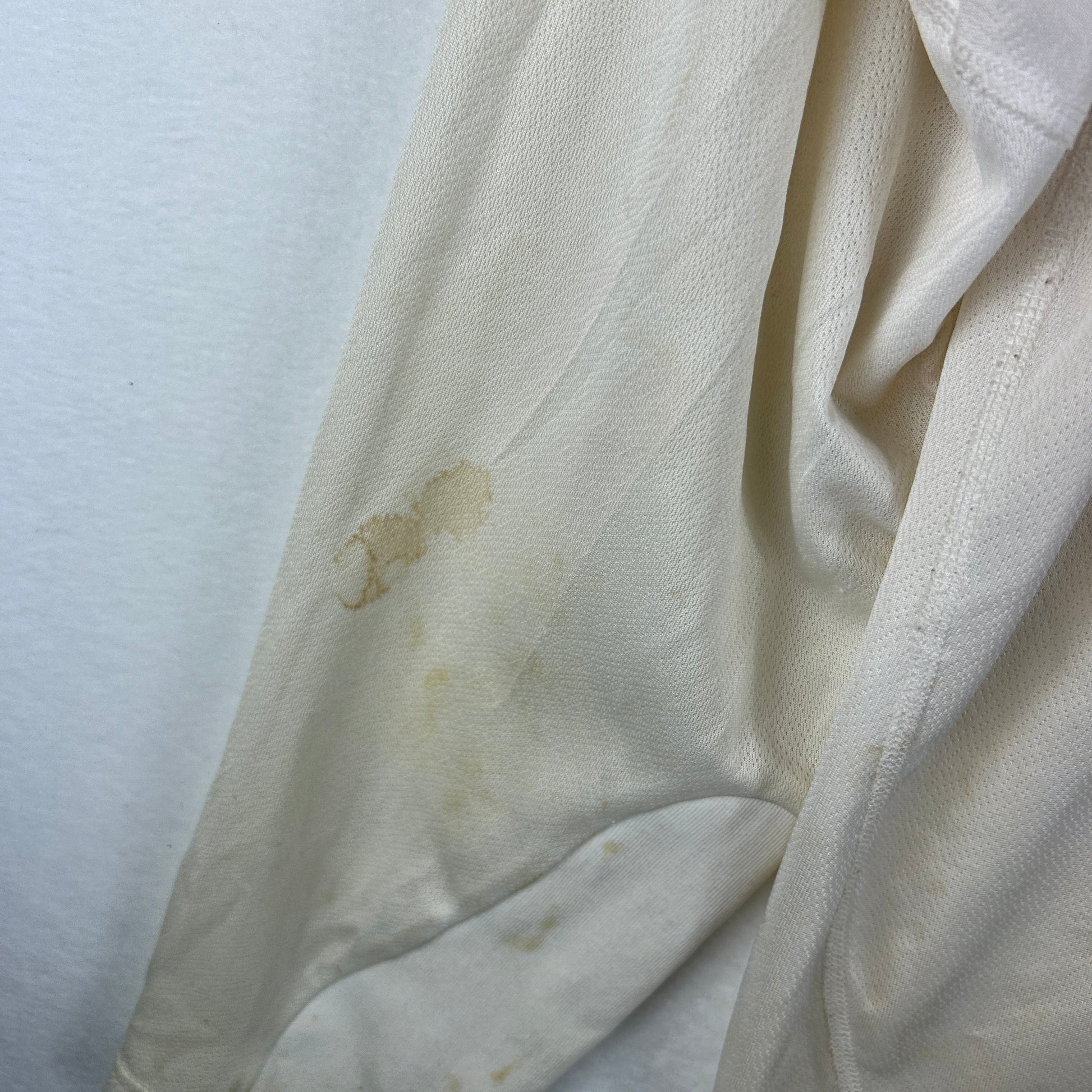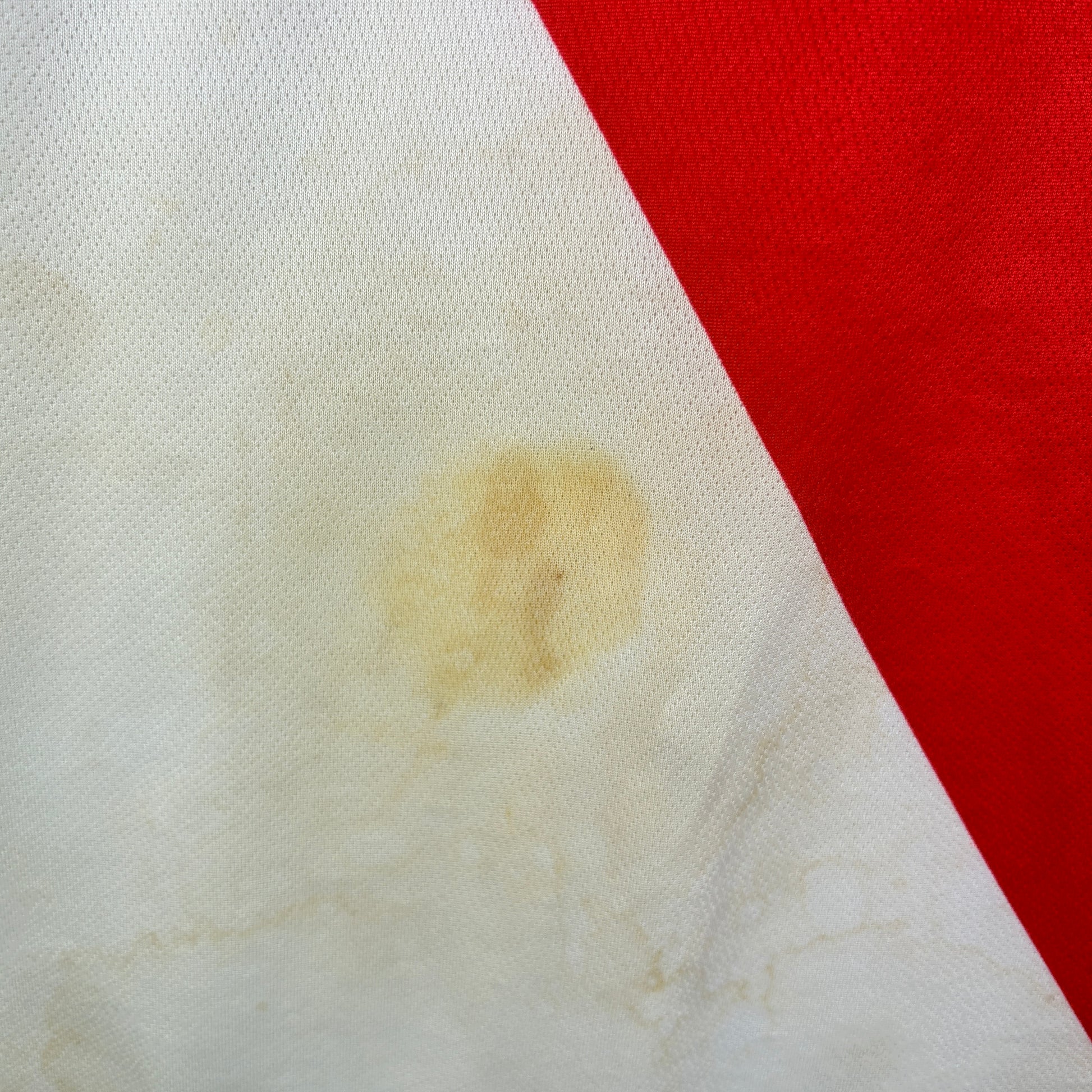 Match Worn: The shirt has come to me as match-worn. From our research, this would have most likely been in the away game against AEK Athens, where Morienties played in a long-sleeved shirt. He generally wore a short-sleeved shirt in Champions League matches.