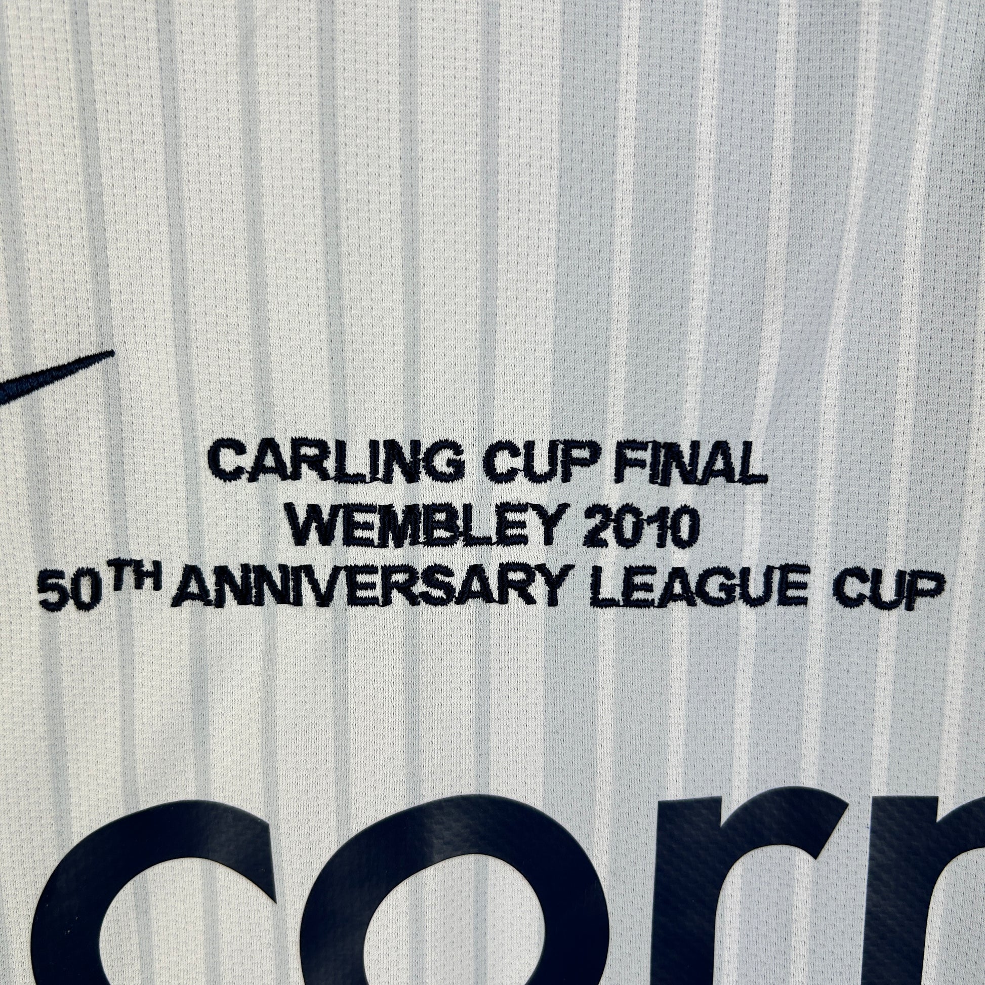 This is a player-issue Aston Villa shirt with no Nike labels on the inside and a print for the wash instructions - correct for player-issue Nike shirts. The shirt has the correct embroidery for the Caring Cup final in 2010.