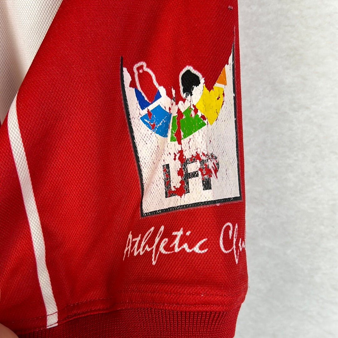 Match Worn: Based on the smell of the shirt I believe it to be match worn, it has come to me as a collection of match worn shirts. The shirt has the Kappa logo replaced by a Bilbao logo on the front and collar.