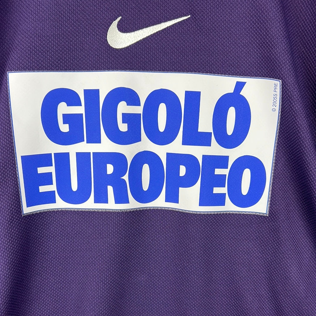 Shirt info: The Atletico Madrid goalkeeper shirt in the 2003/2004 season. This has the unique Gigolo Europeo sponsor on the front - one of Atletico's many sponsors during this season.