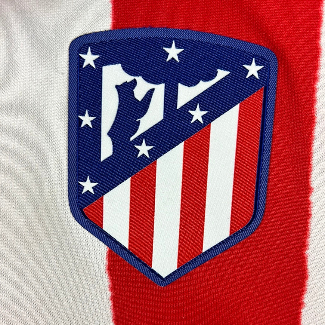 Shirt info: This is the home shirt for Atletico Madrid in the 20/21 La Liga season. It has traditional stripes with a blurred-edge design.