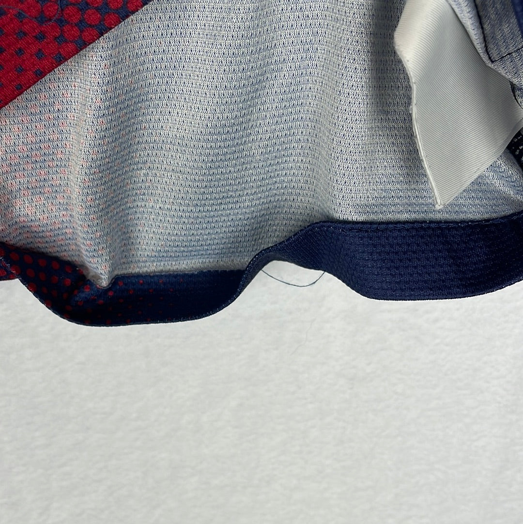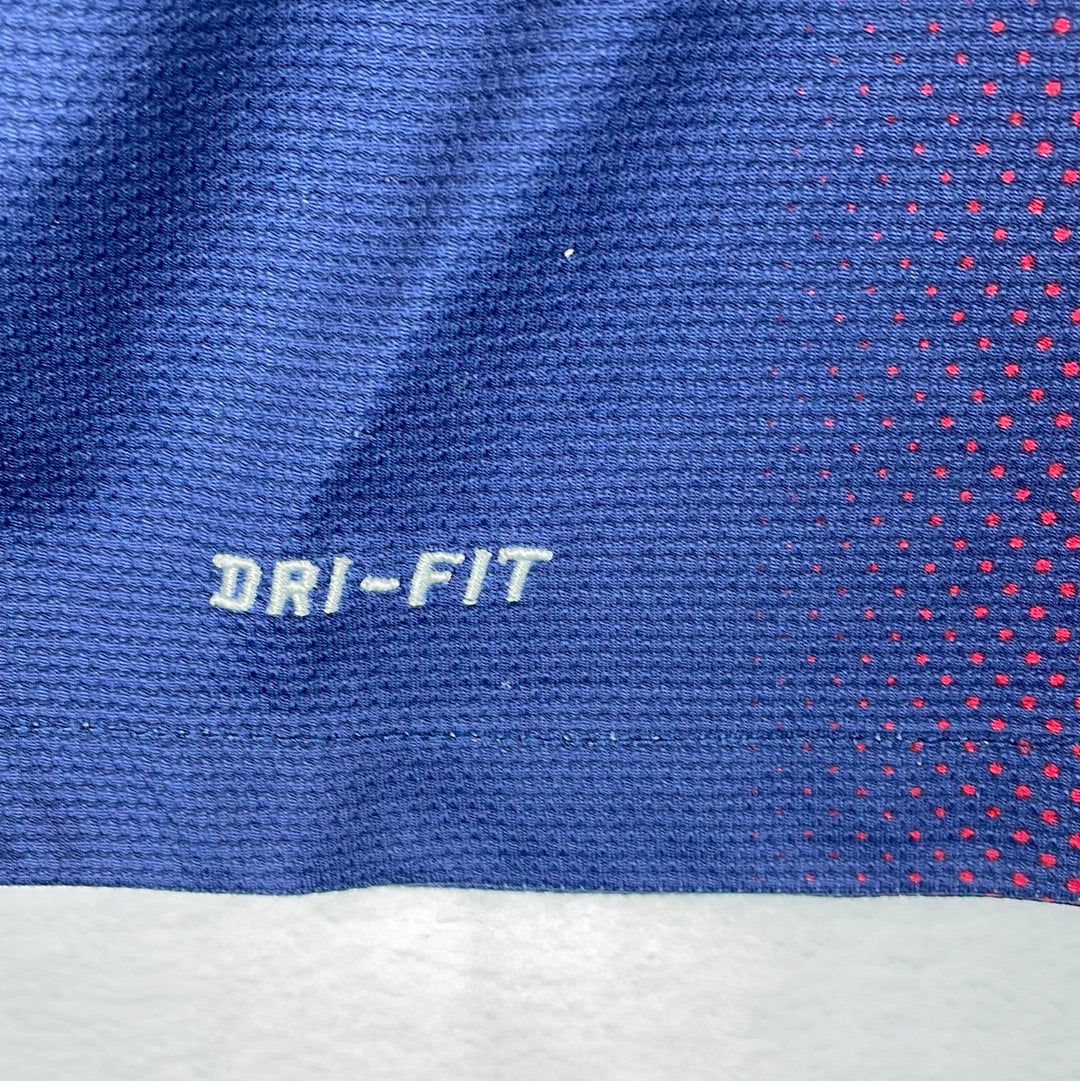 Shirt info: A classic Barcelona shit with just one stripe down the middle that blends into the blue in a spot style. An iconic shirt from Lionel Messi's career. It has a yellow Nike swoosh and yellow Qatar Foundation print on the front.