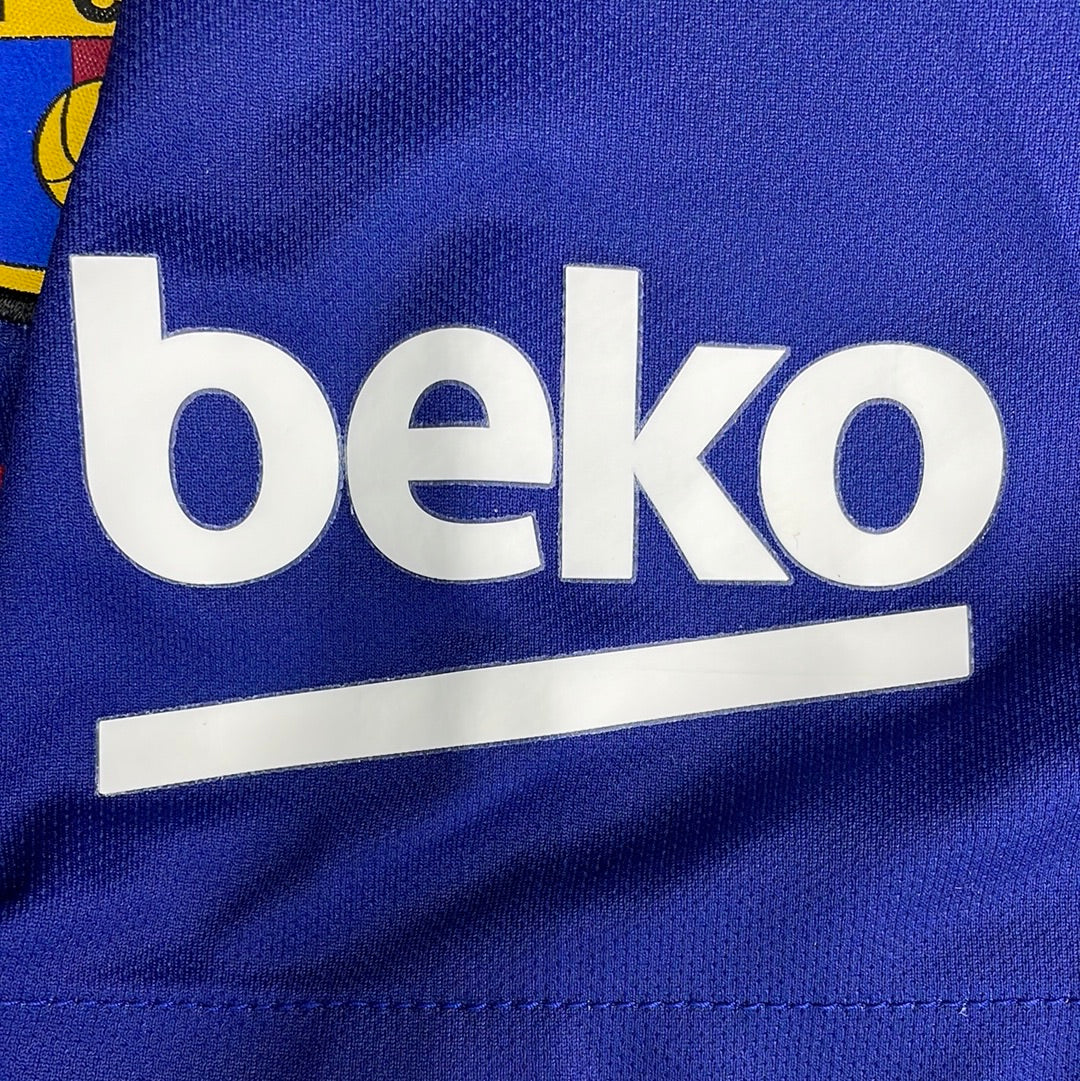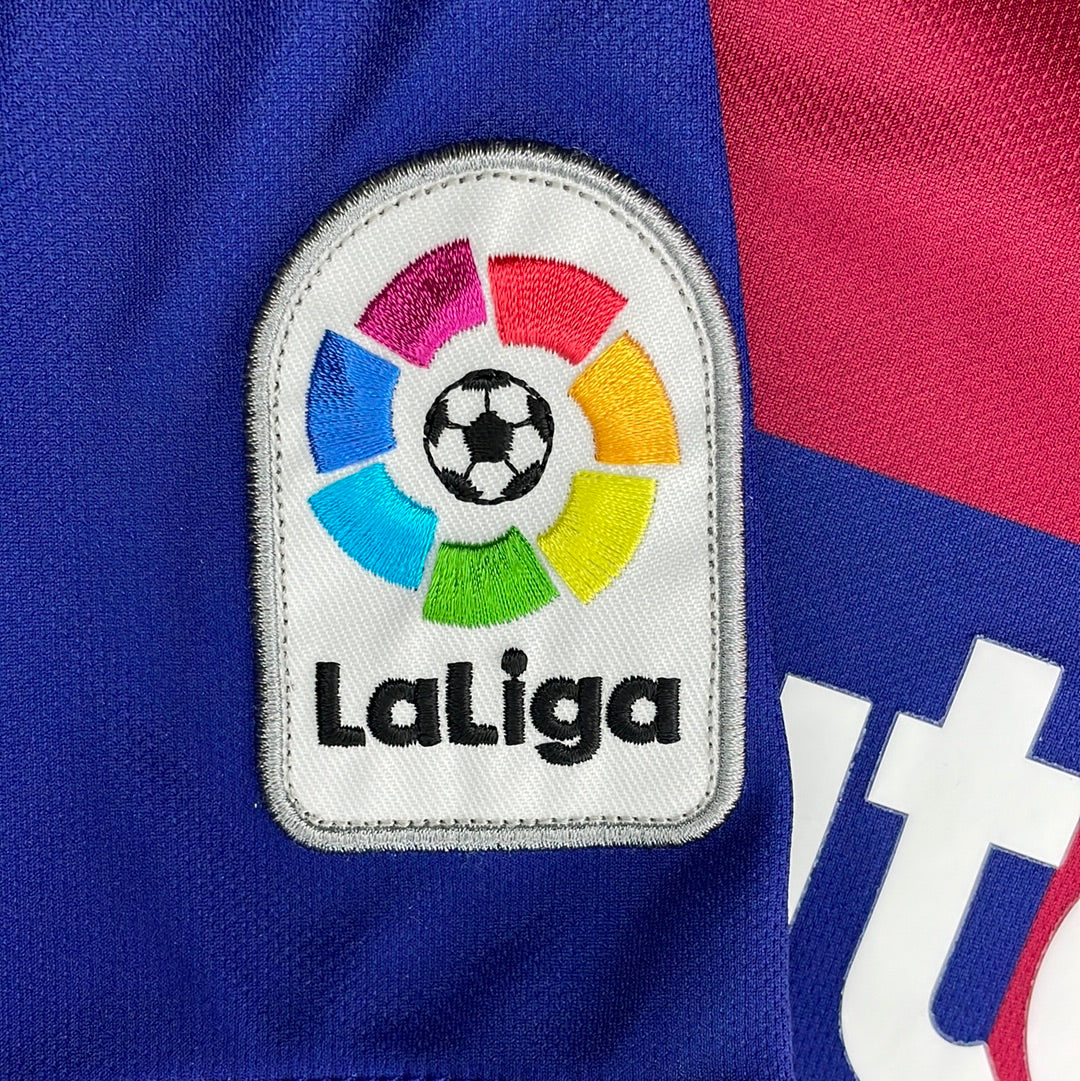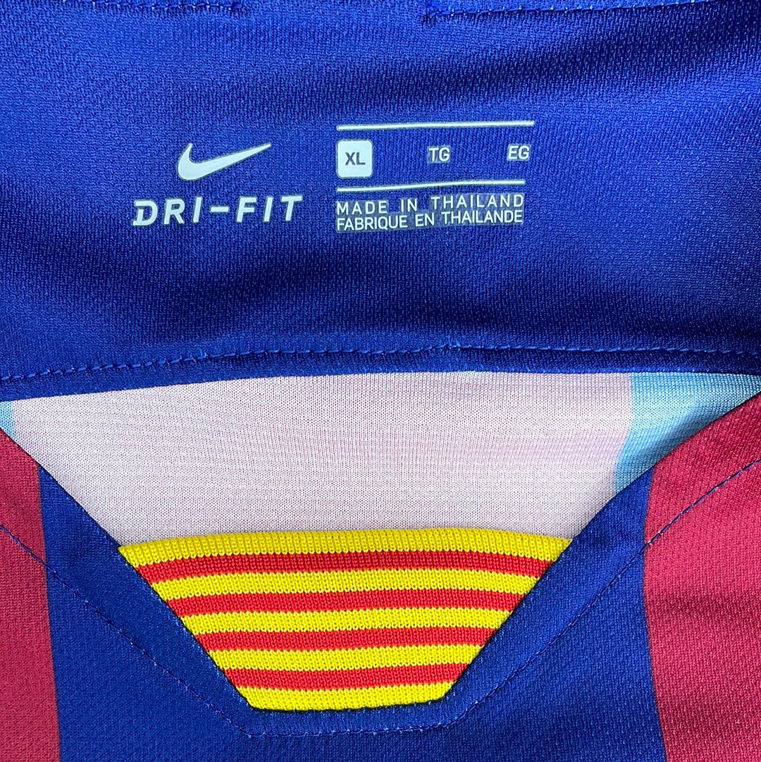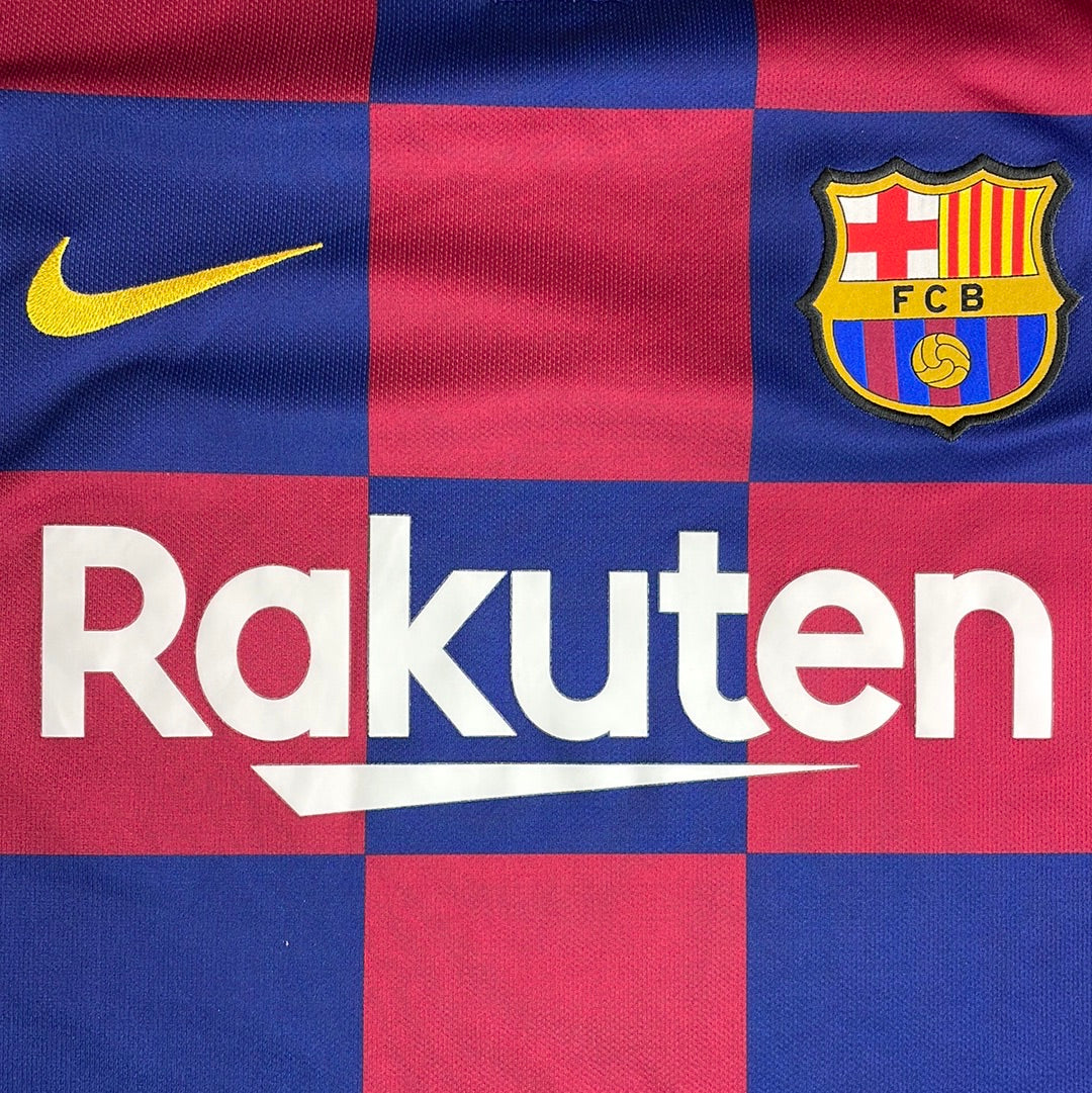 Shirt info: A strange Barcelona shirt with checks rather than stripes. Used as the home shirt in the 2019/2020 La Liga season. La Liga sleeve patches.