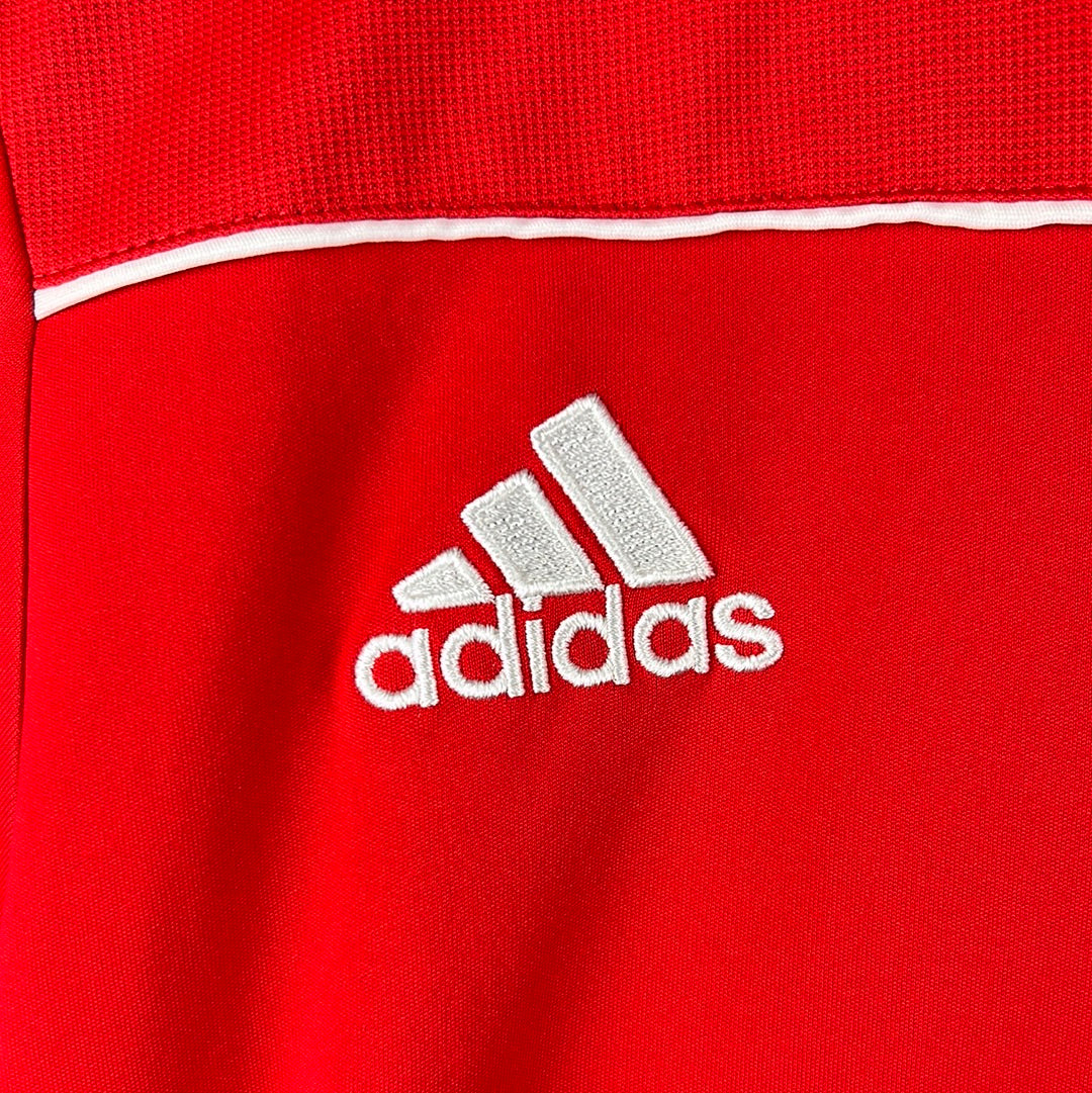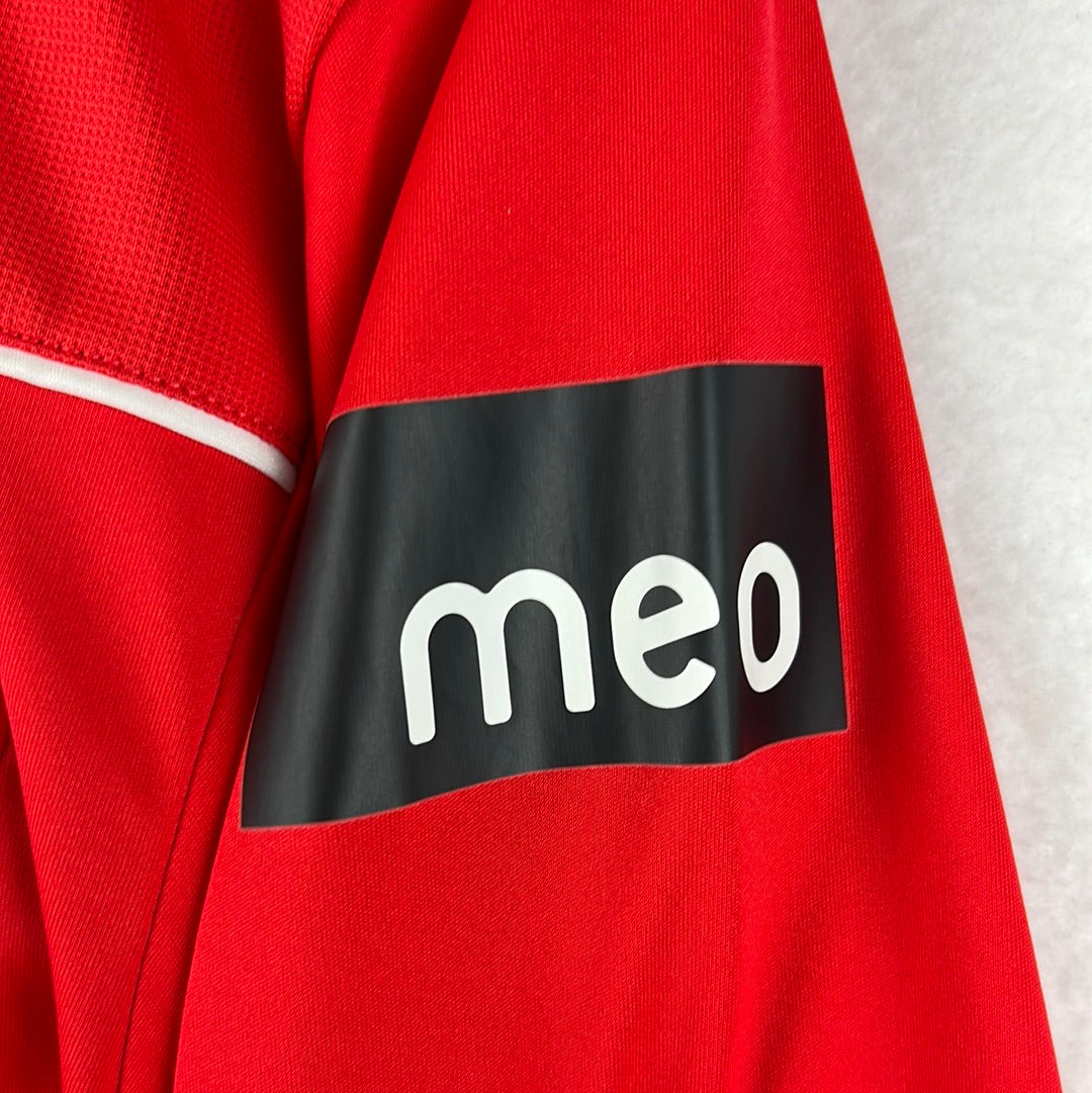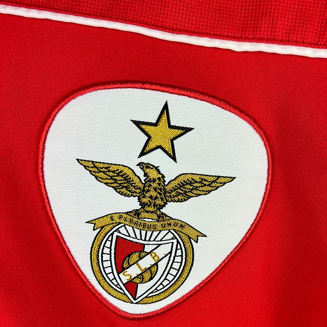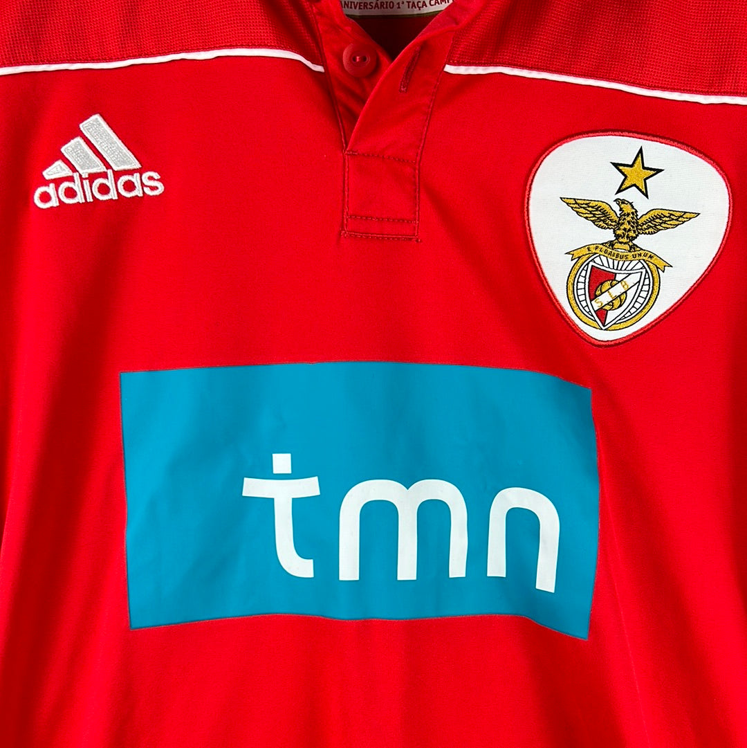Shirt info: The Benfica home shirt worn in the 2010-2011 season. The shirt features the classic Benfica red and a white Adidas 3-stripe sleeve design. The Benfica badge and Adidas logo are embroidered. The blue 'tmn' sponsor is printed.