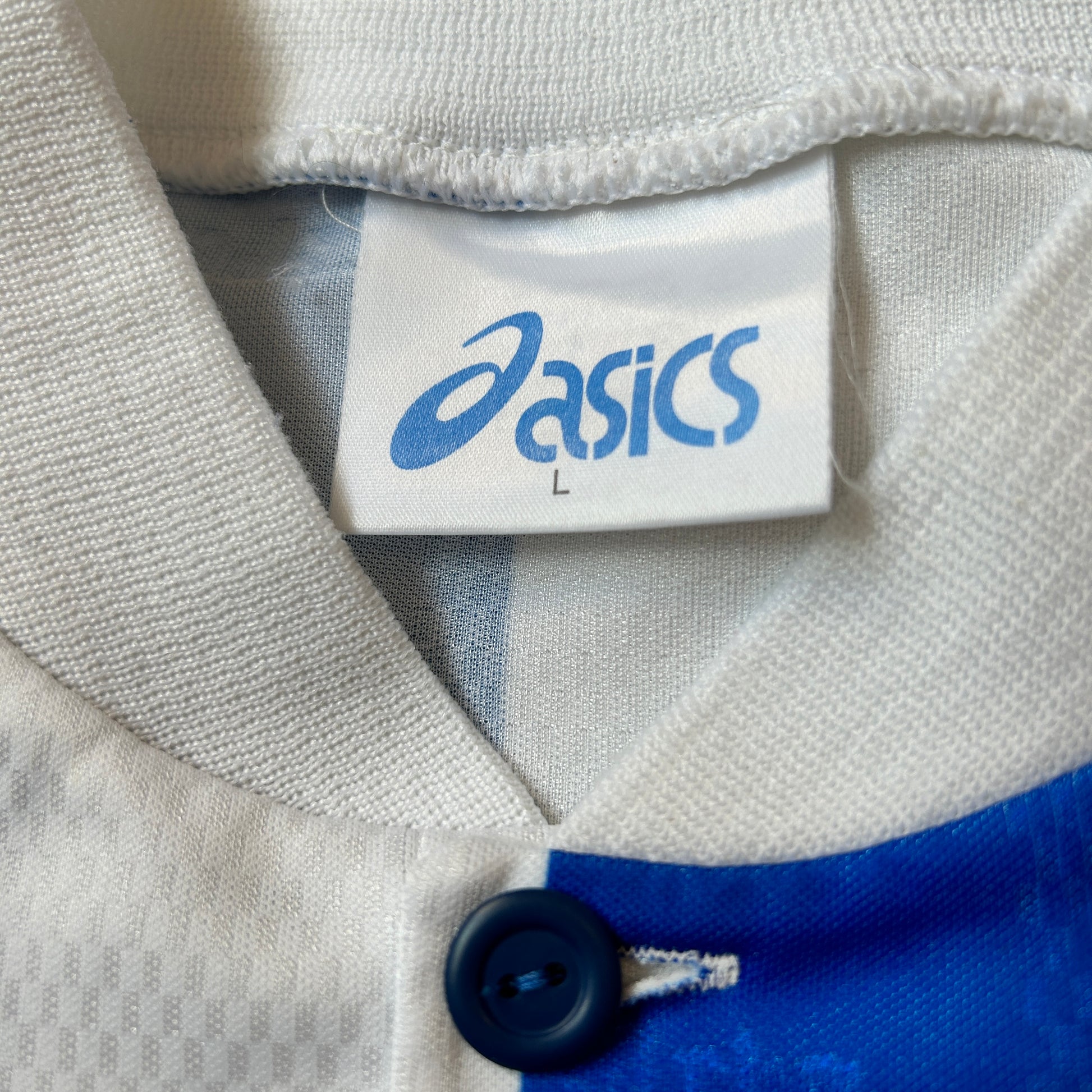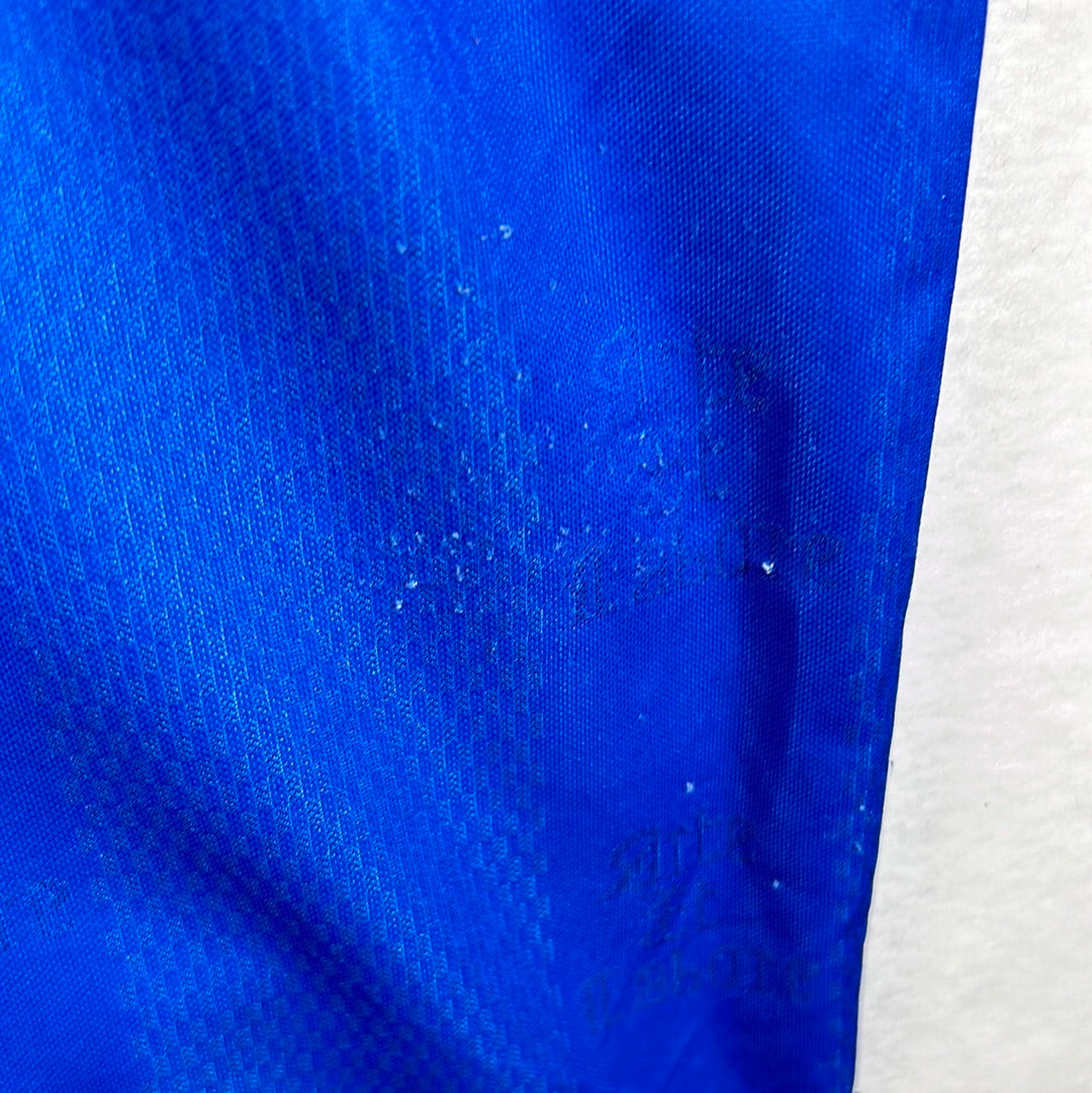 Shirt info: The Blackburn Rovers shirt was worn in the 1996/1997 and 1997/1998 seasons. It is a traditional two-tone home shirt with a CIS Insurance front sponsor patch. The shirt has a three-button grandad collar, a common trend in the mid-to late 1990s.