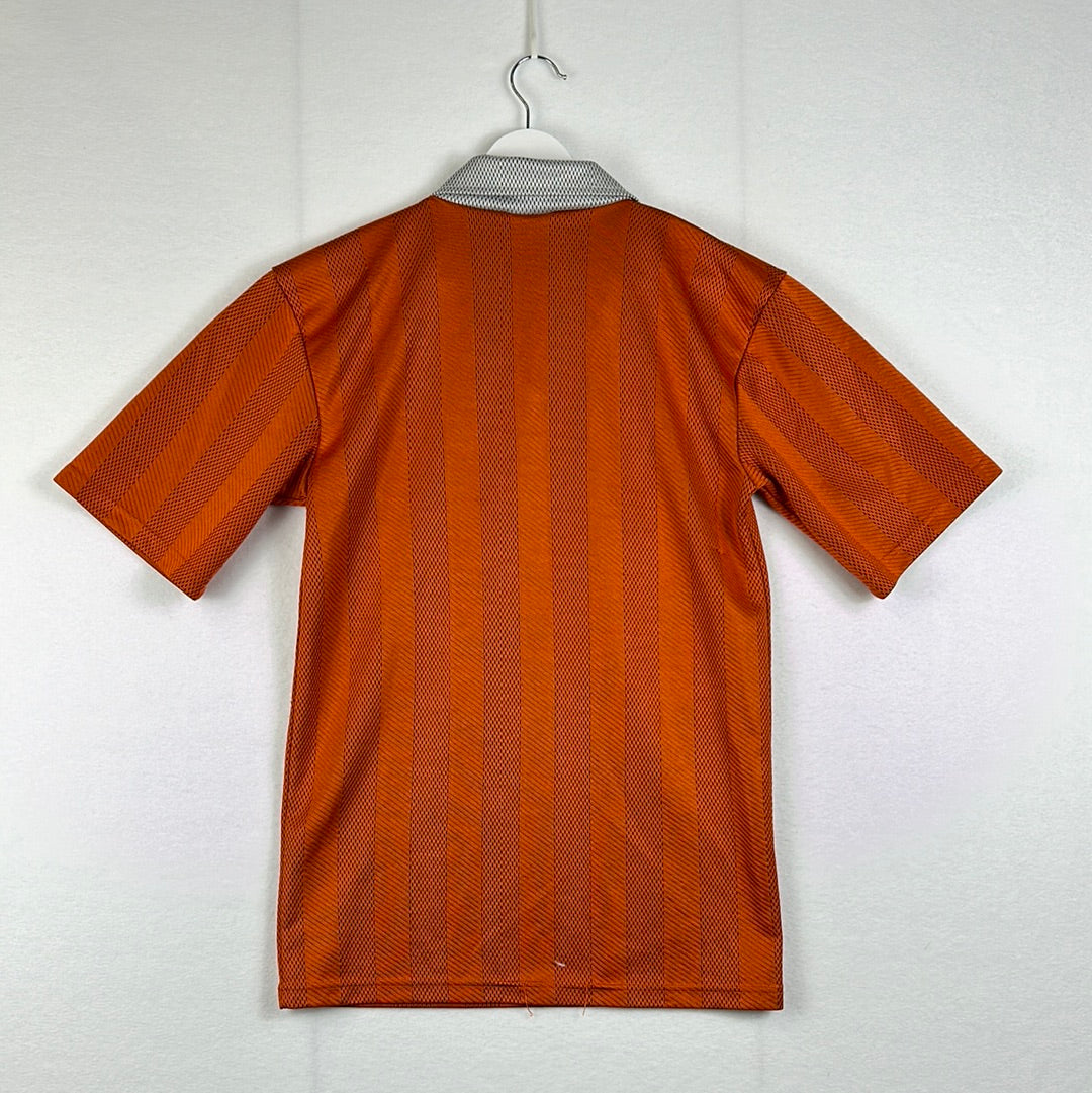 Shirt info: This follows on from the amazing yellow shirt the previous season. It is a strange orange shirt that was only used for 1 season. The shirt has 2 layers with the outside being a waffle-type material and the inside a black. Even the collar follows this pattern.