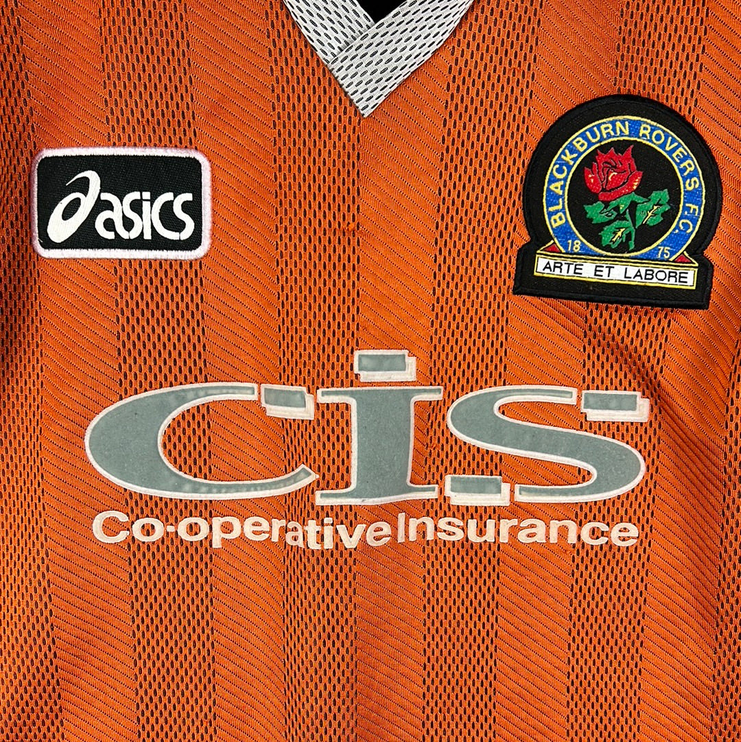 Authentic? Yes, this is an authentic 1997 Blackburn Rovers Asics away shirt.