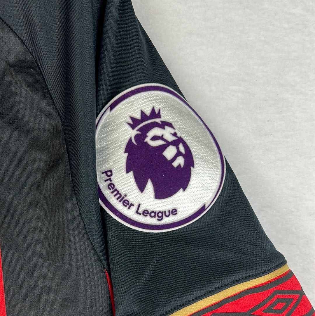 Player Issue Details: The shirt is an Umbro shirt with a heat-pressed Premier League badge and a no room for racism badge. The player print is the correct size for a player shirt.