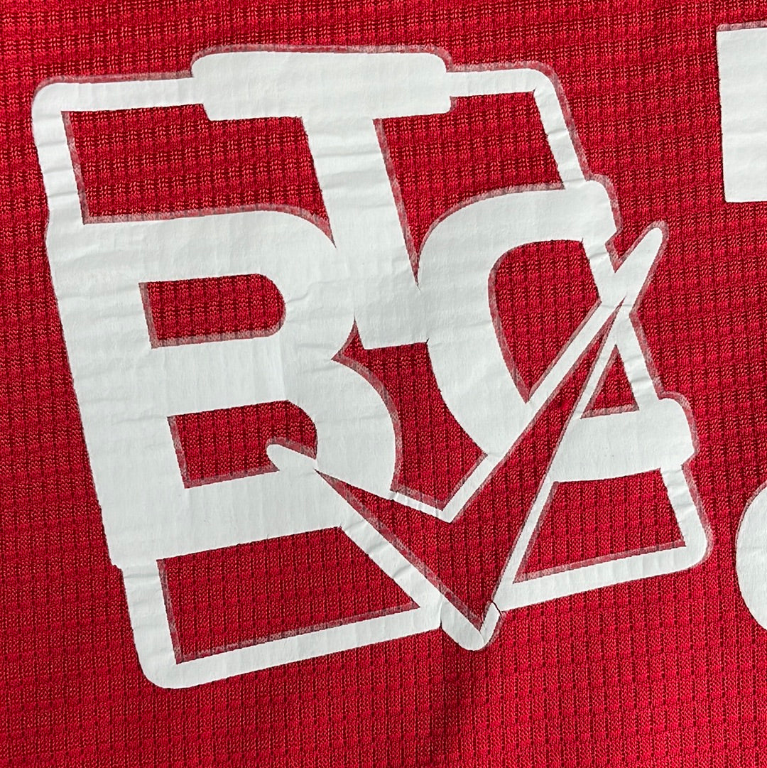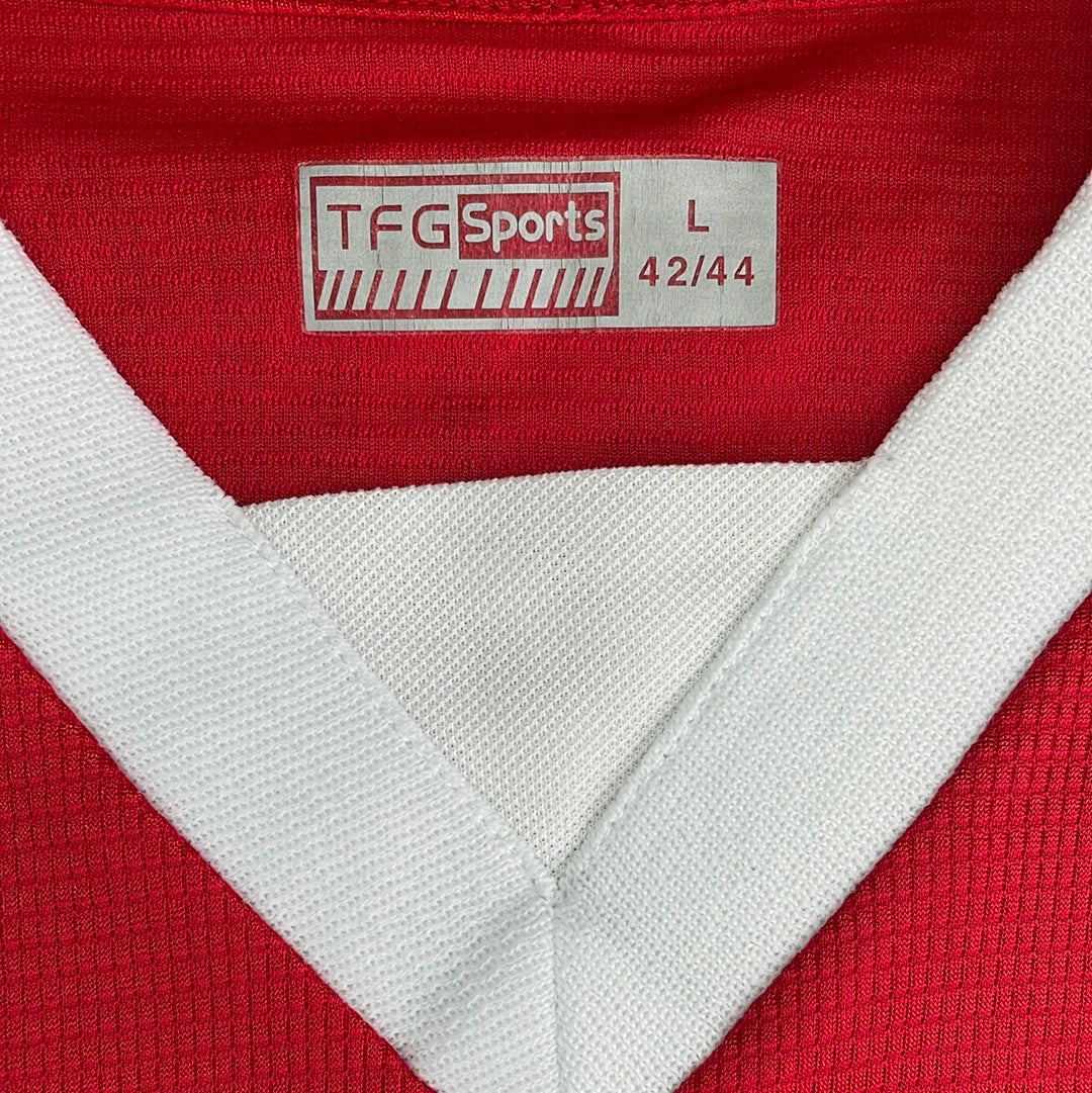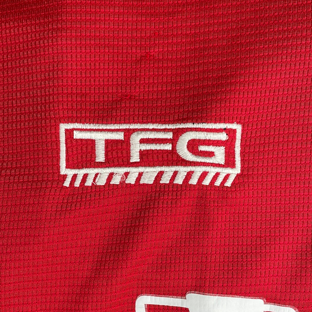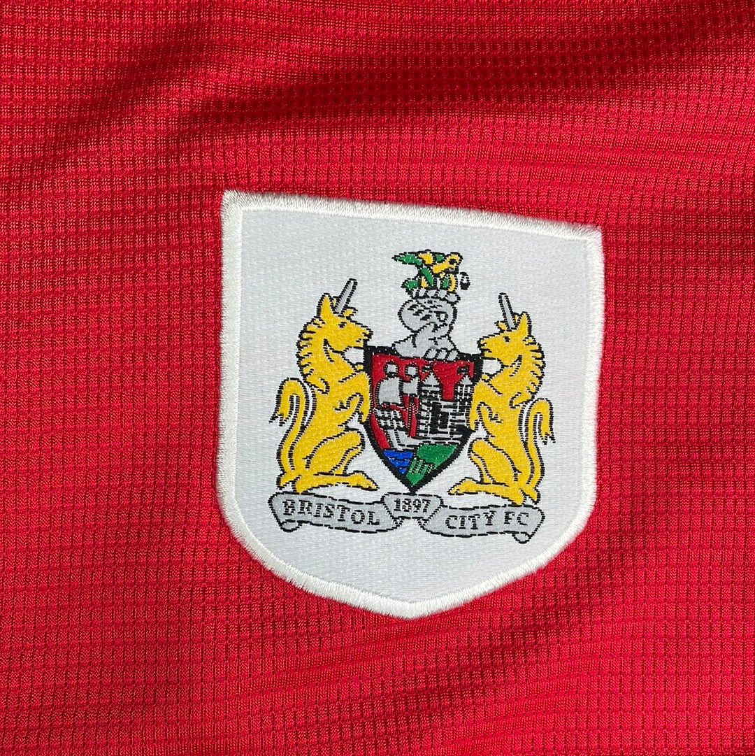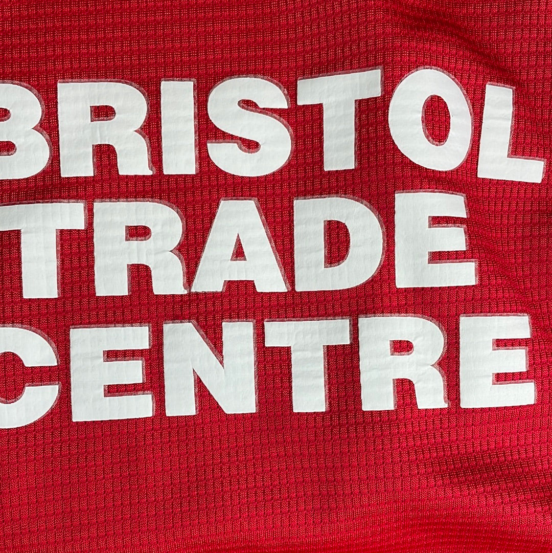 Shirt info: The Bristol City home shirt in the 2005/2006 season. A red shirt with white trim details and a shirt front sponsor. The shirt also has the BLACKTHORN sponsor on the back.