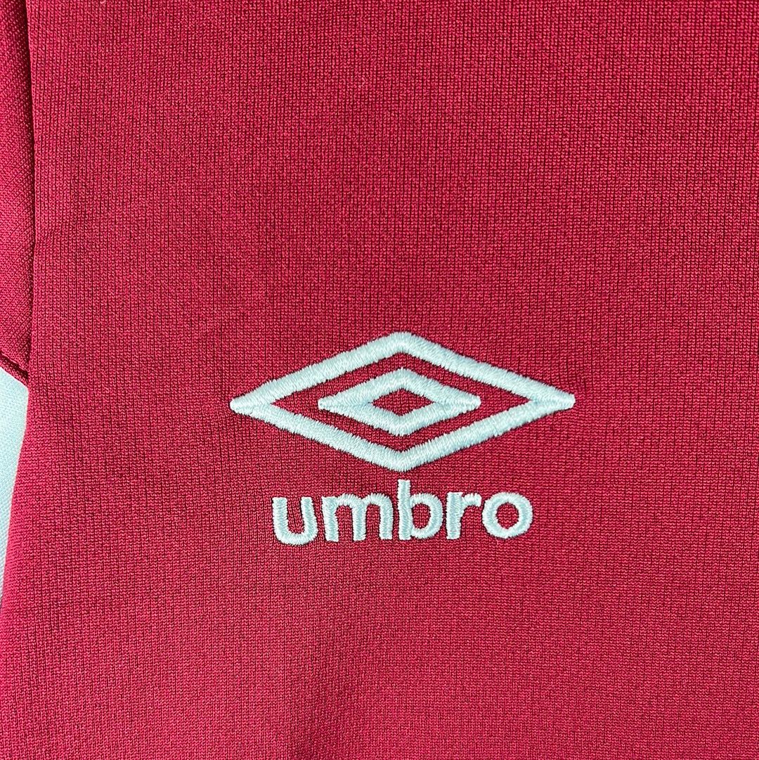 Player Issue Details: The shirt has a player-issue name print and a Premier League sleeve patch. The Umbro logo is fully embroidered.