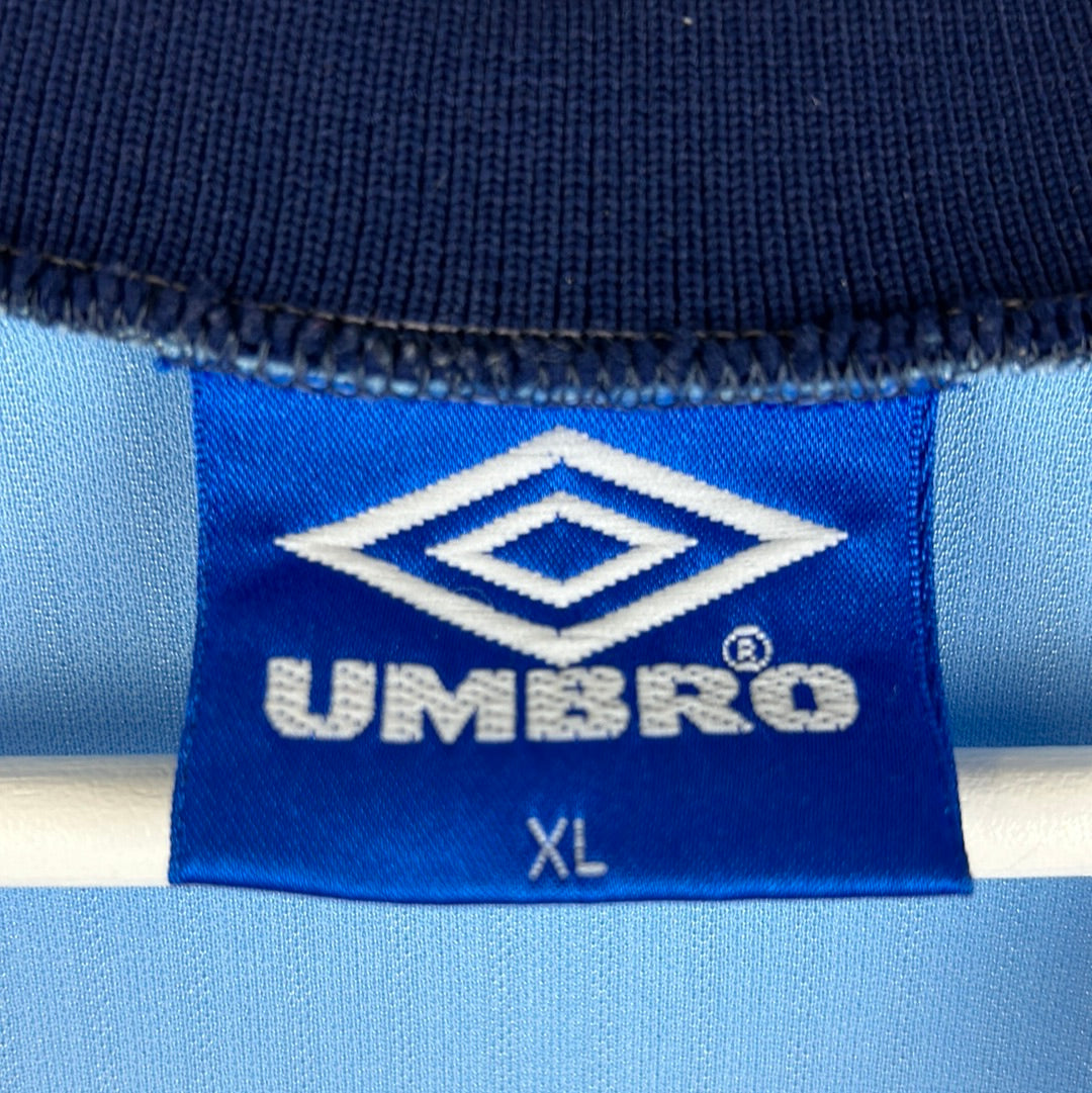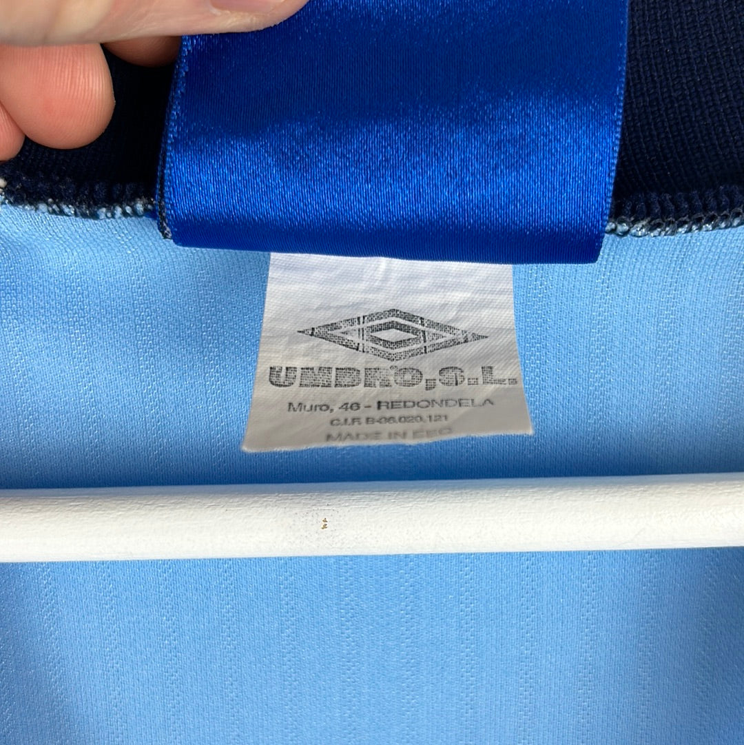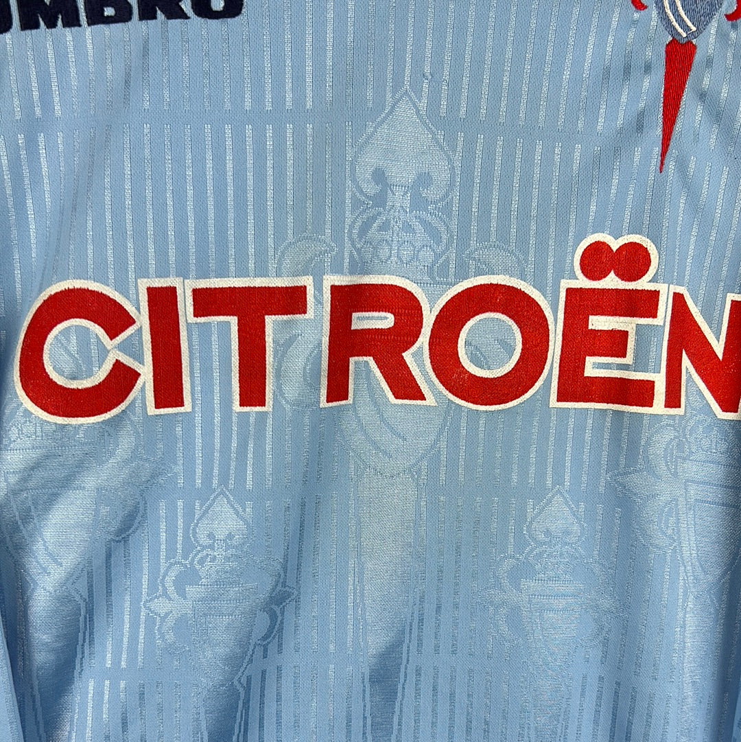 Match Worn: This has come to me as worn v Atletico Madrid. Due to the game in 1997, I am unable to provide a photo match for this. The shirt is a long sleeve with the Umbro logo and Celta Viigo madge embroidered on. There is a La Liga sleeve patch and a 75th-anniversary sleeve patch that are both hand-sewn.