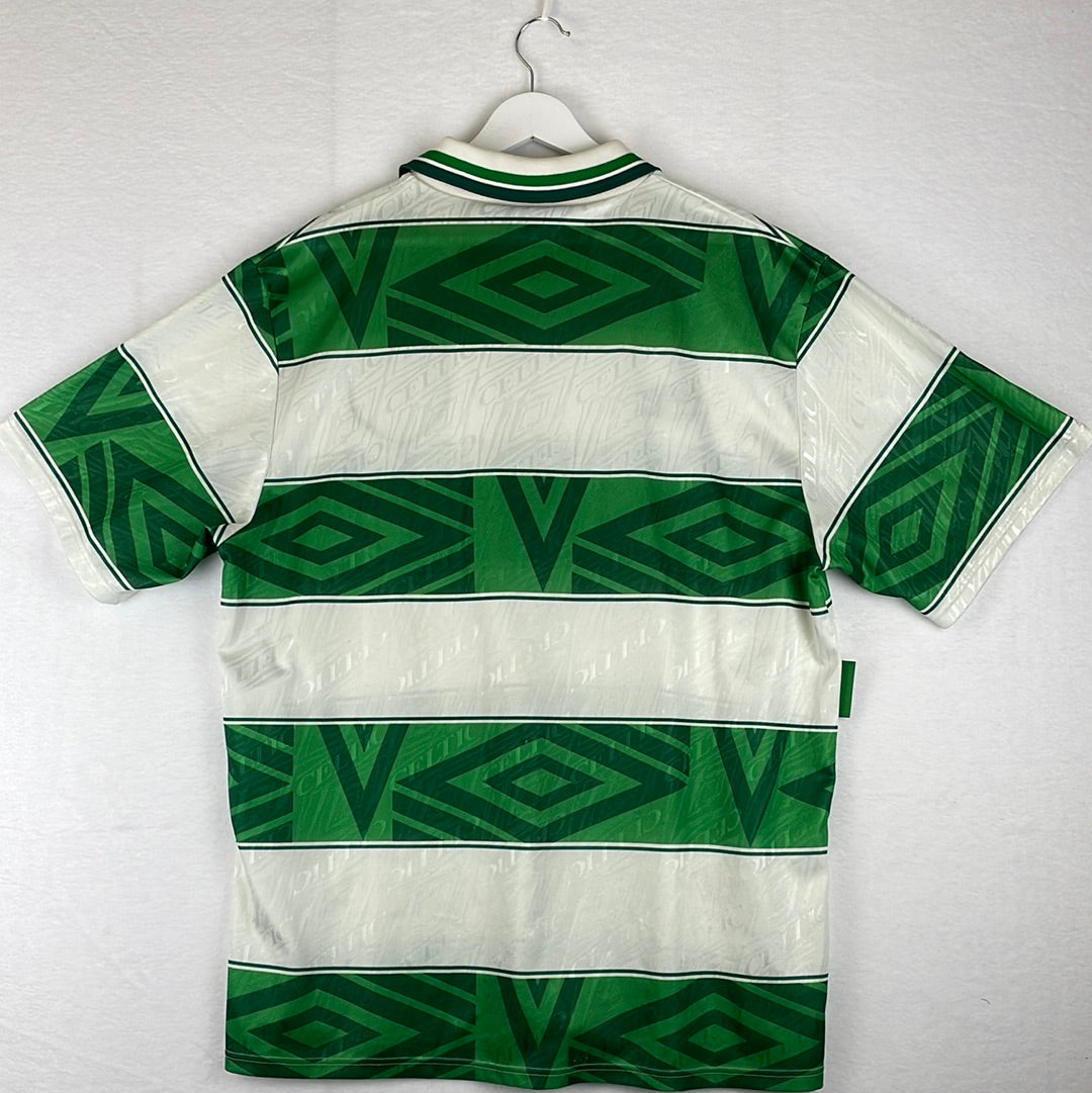 Shirt info: A legendary Celtic home shirt with the classic CR Smith sponsorship. The stripes on the shirts have the Umbro logo in the material in various places. The white sections of the shirt have "Celtic" in the material.