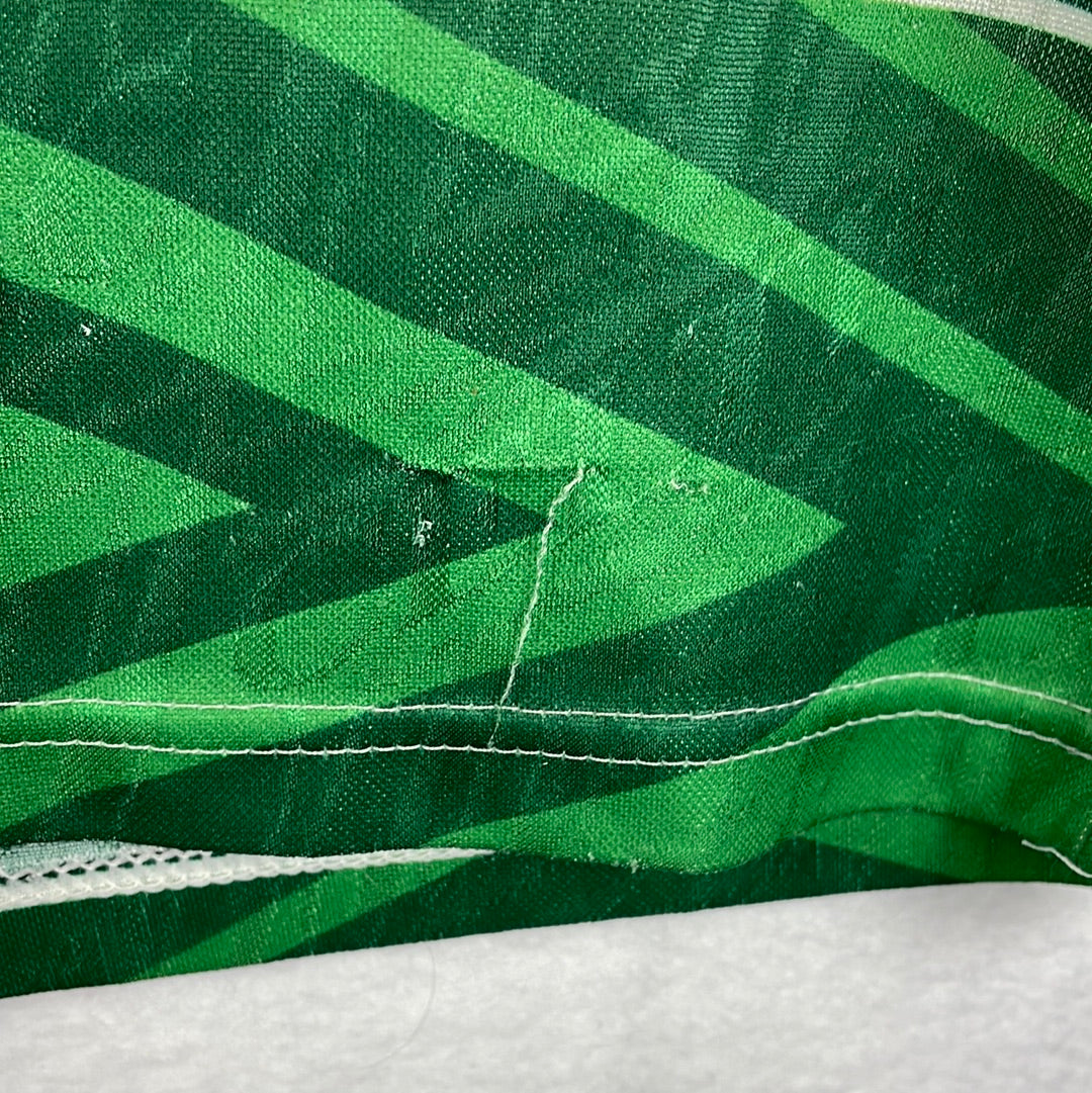Condition Details: The shirt has some signs of wear with an occasional bobble in the material. The size label is washed out and the Umbro logo on the front is starting to wear off.