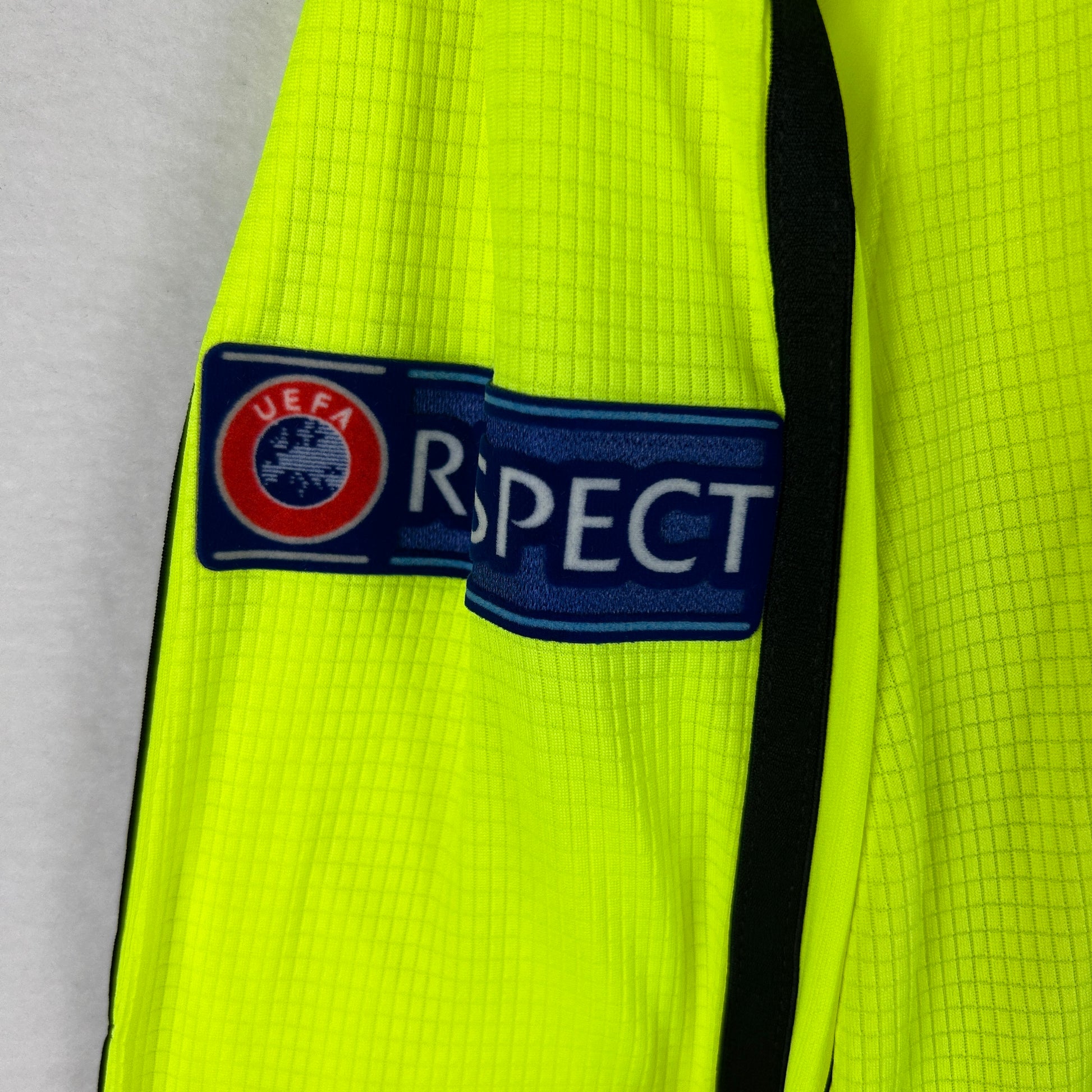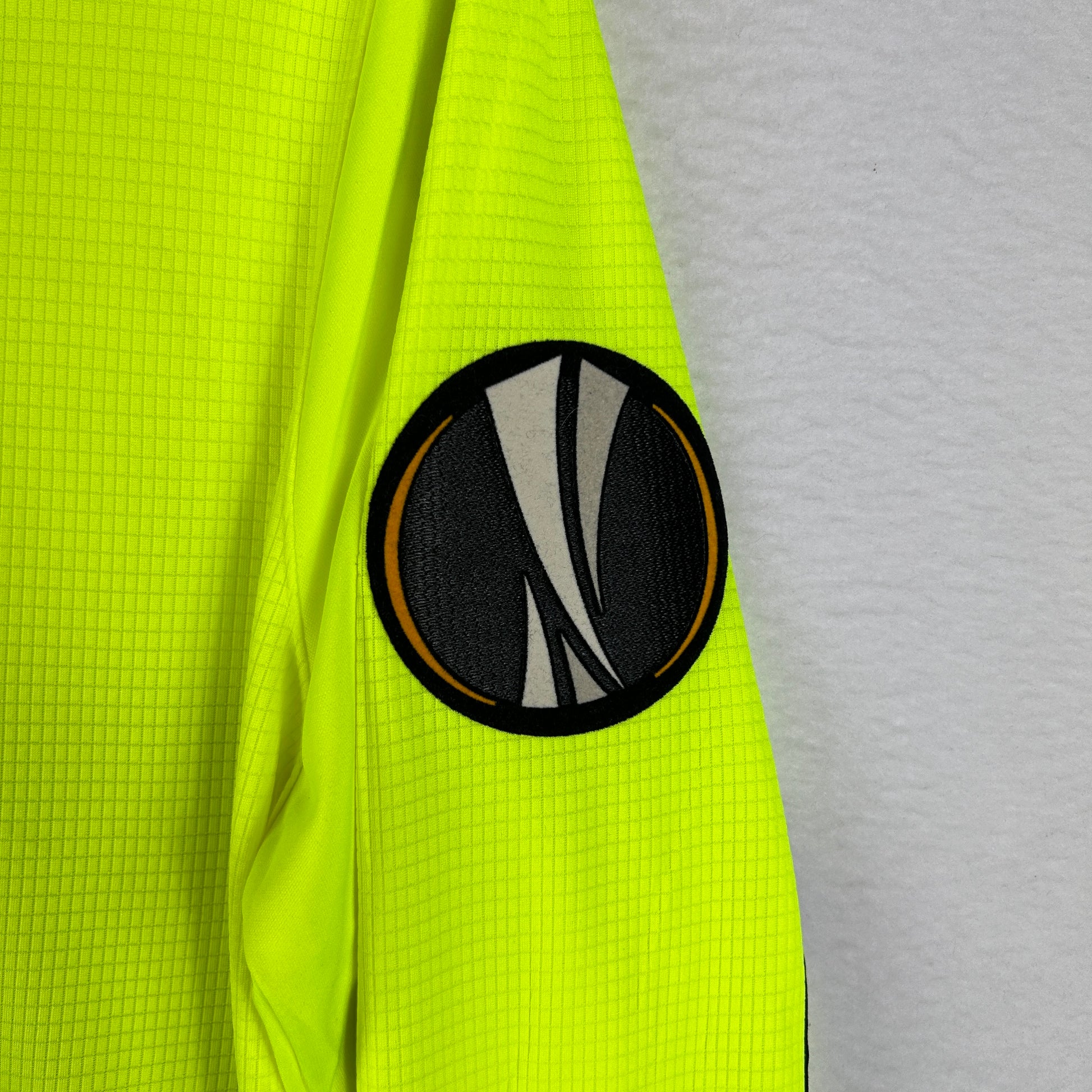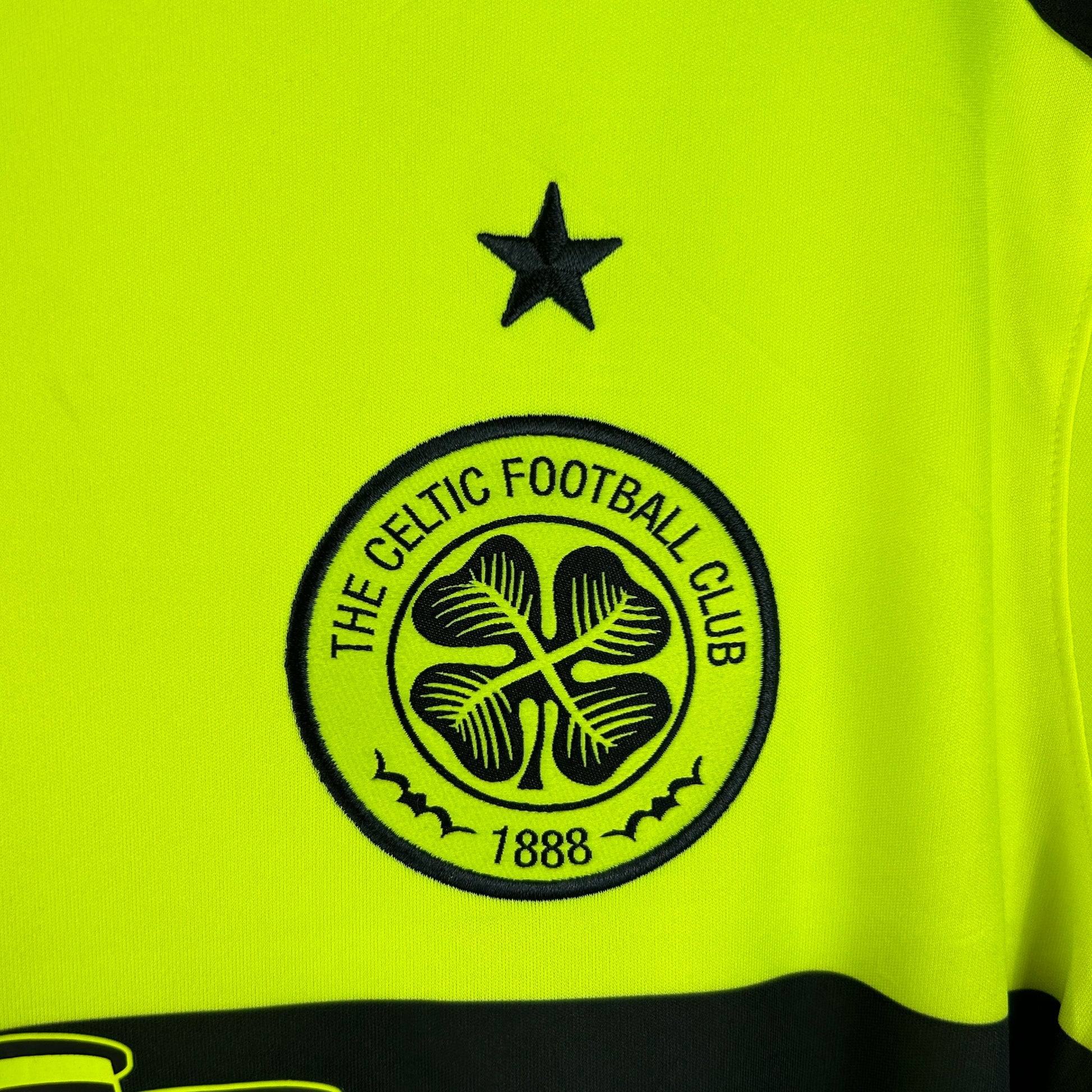 Shirt info: The Celtic third shirt in 2015/2016 with Griffiths 9 cup print and Europa League and UEFA Respect sleeve patches. The print and badge sizes are correct for a player-issued shirt.