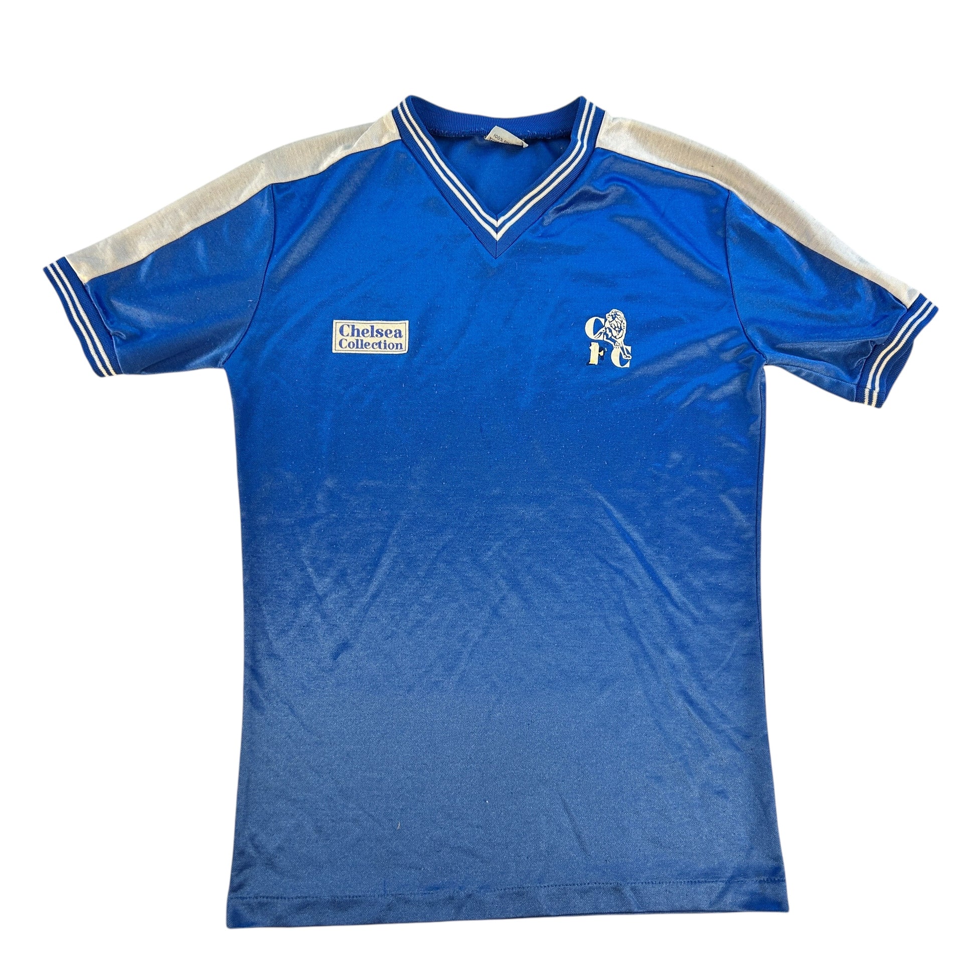 Info: An incredibly rare Chelsea home shirt from the 1986/1987 season. Produced by "Chelsea Collection"  these shirts had a reputation for falling apart, or the badges coming off them. This one is still in good condition with just some light bobbling to the material.