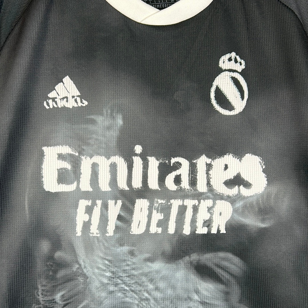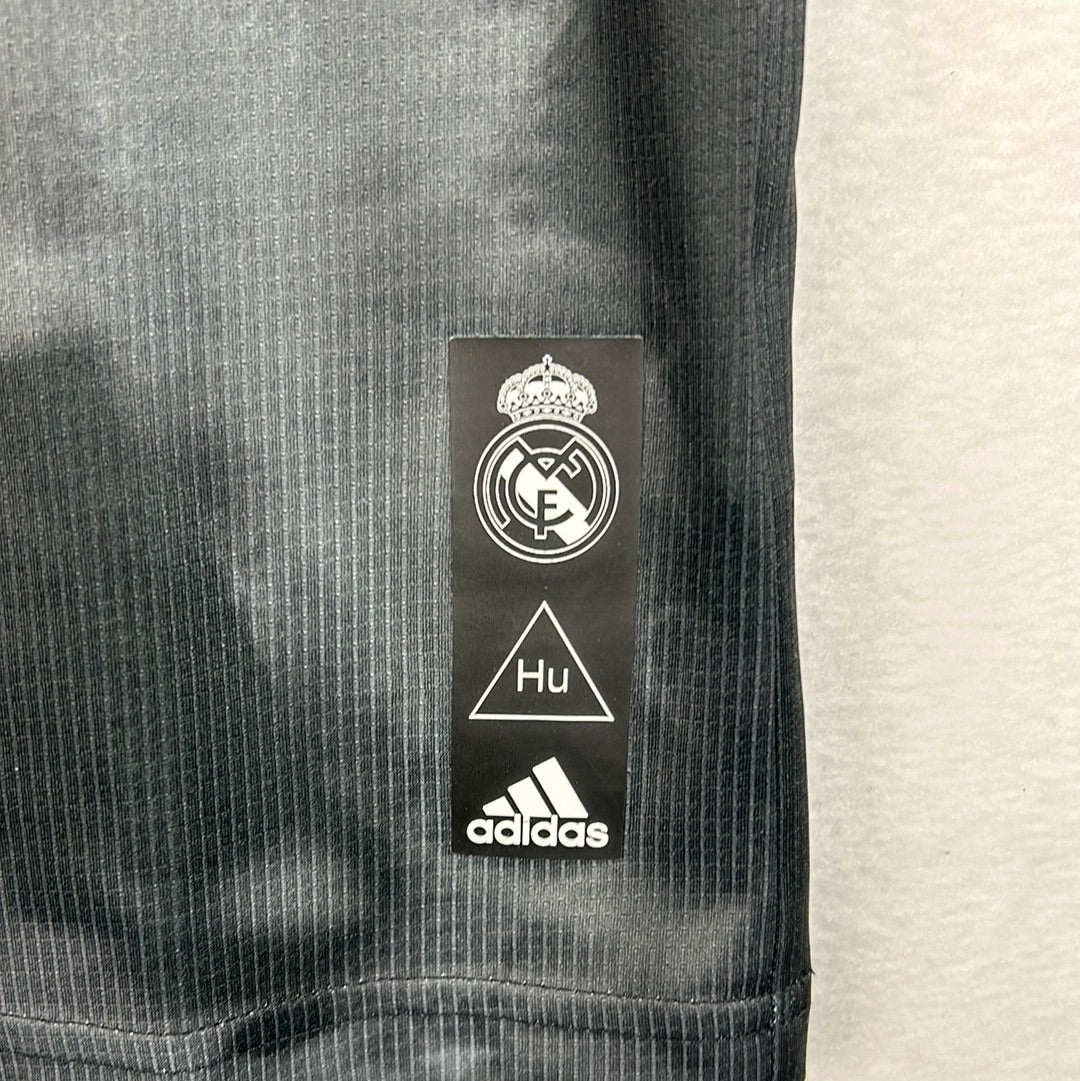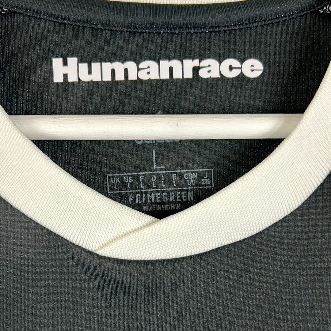 Shirt info: A Pharrel Williams-designed Human Race shirt. This was used as a pre-match shirt for Real Madrid. The design is based on the 2017-2018 away shirt which featured a dragon design. The shirt still has the Emirates Fly Better sponsor on the front, unlike the Manchester United version. It has the Human race printed on the lower back.