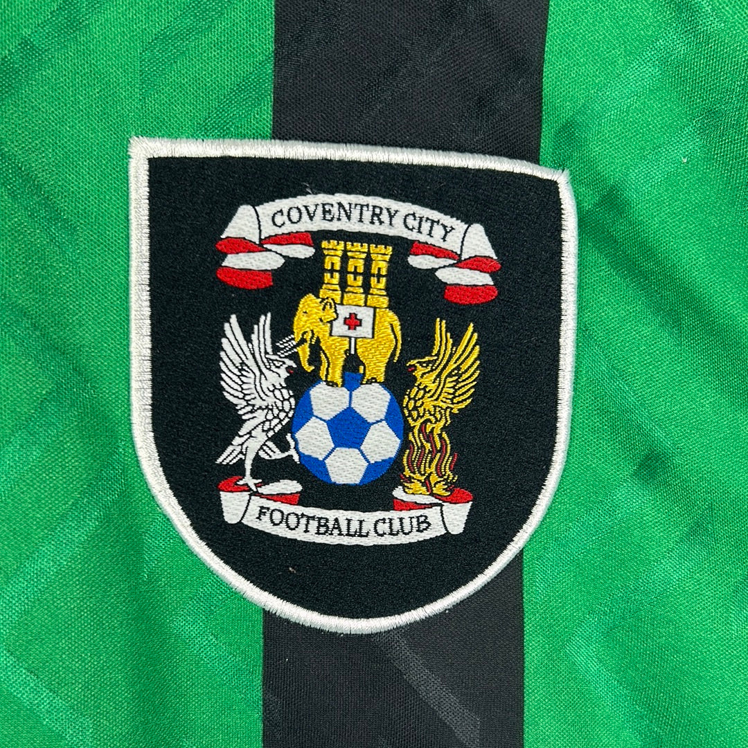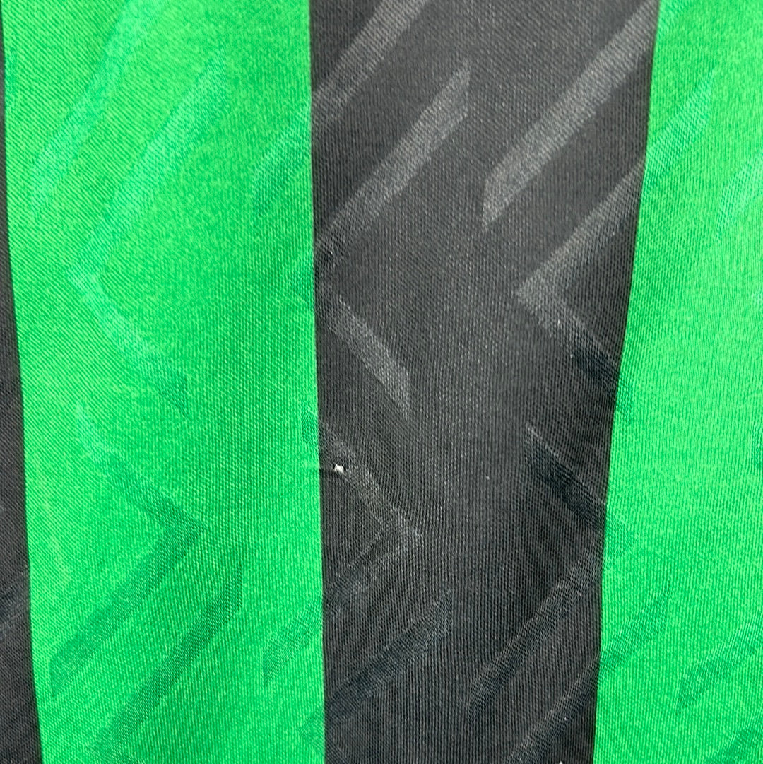 Shirt info: Another classic shirt from Coventry City, who had endless amazing shirts in the 1990s! A green and black striped shirt with fron Peugeot sponsor.