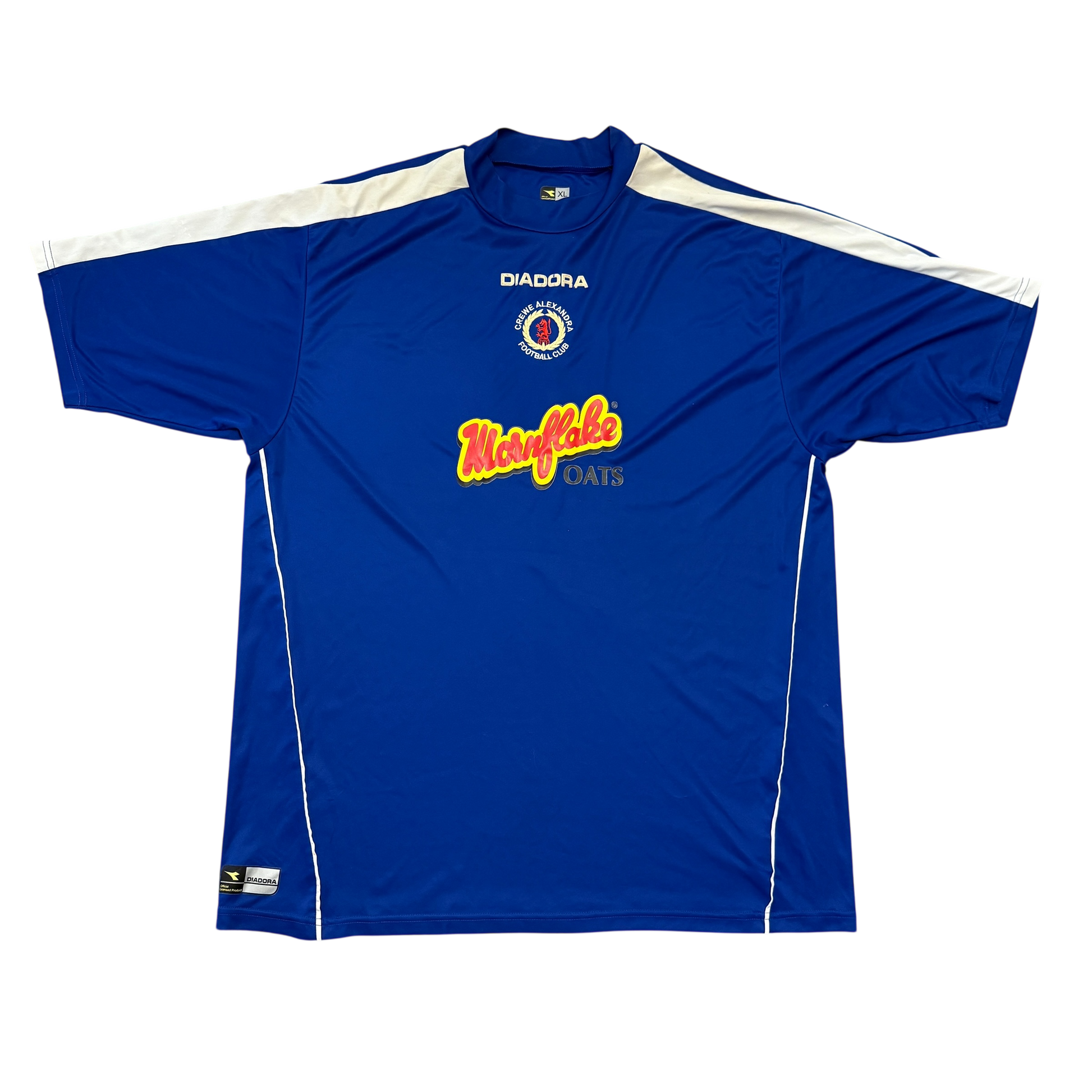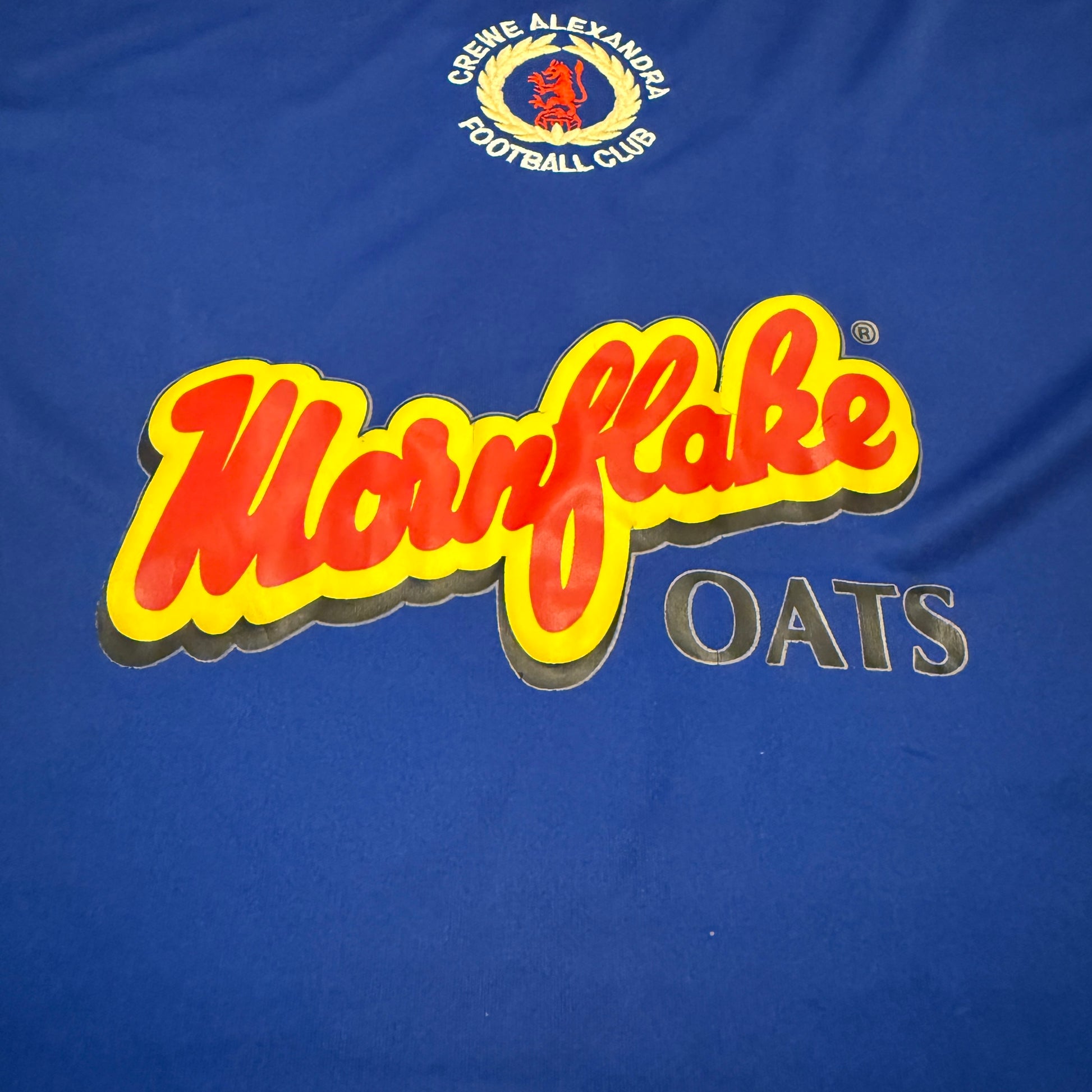 Shirt info: The away shirt for Crewe Alex in the 05/06 and 06/07 seasons. A standard blue away with printed Mornflake Oats sponsor on the front.