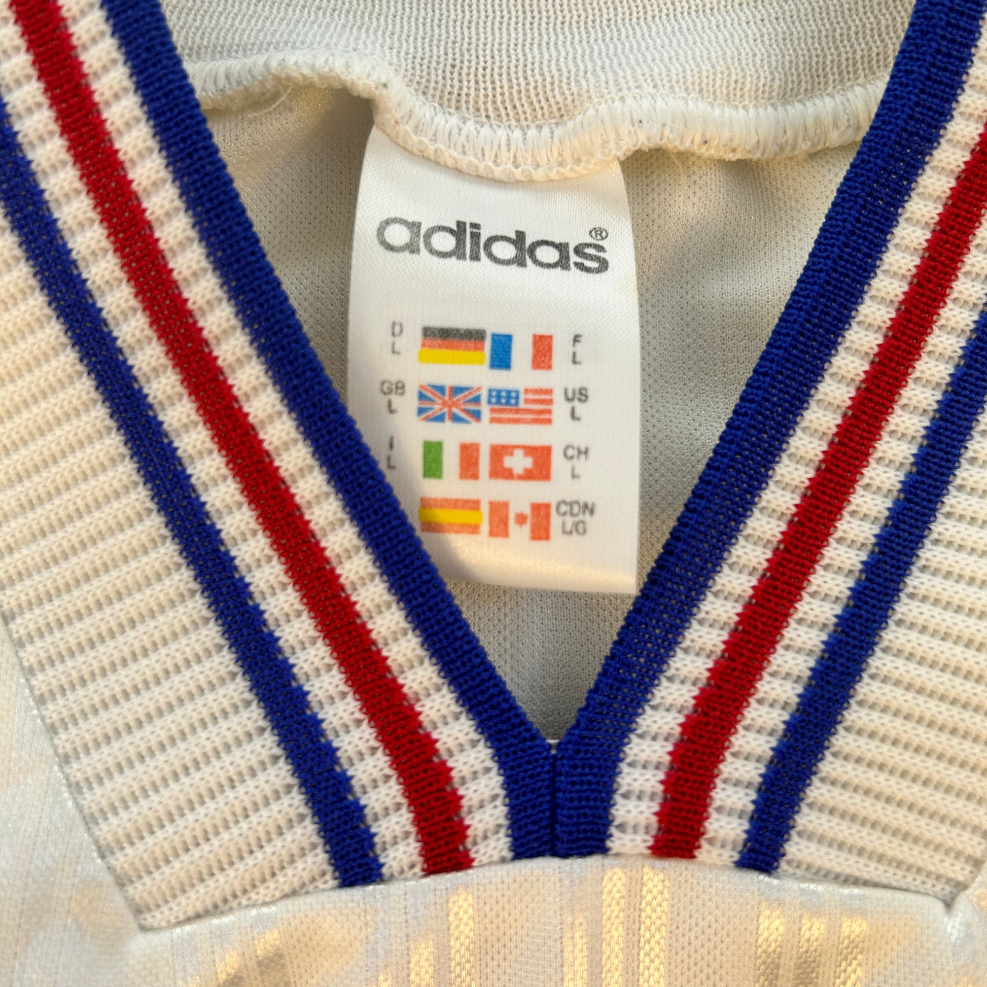 Shirt info: The Crystal Palace away shirt in the 96/97 season. It was also used in the 97/98 season as the third shirt. This is a classic Adidas template of the time and the design was used by numerous Adidas clubs and international teams. It is one of the best shirts from Crystal Palace kit history