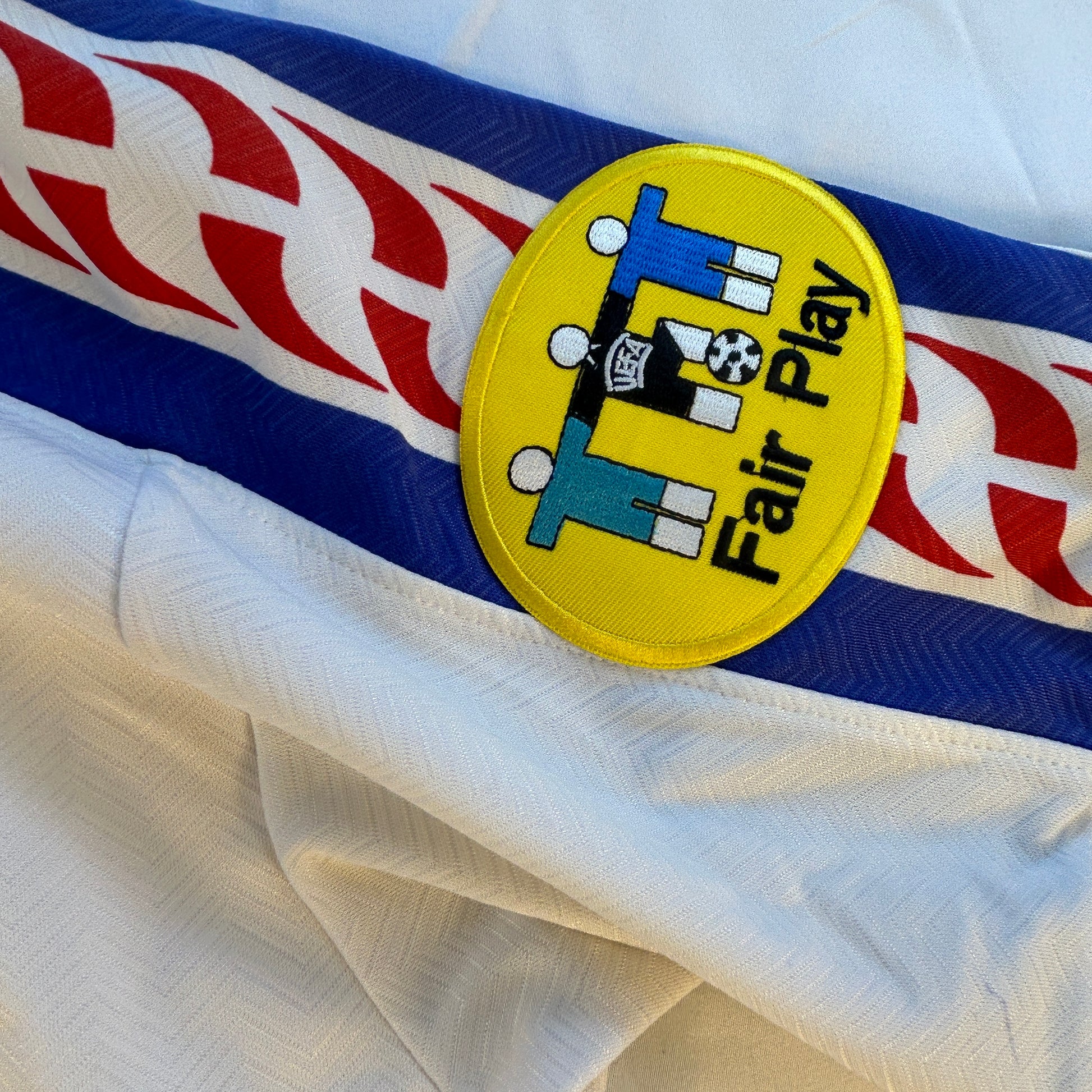 Shirt info: The away shirt for the Czech Republic in Euro 1996. The shirt has the Euro patches on both sleeves, the Poborksy 8 print on the back, and the eight print on the front.
