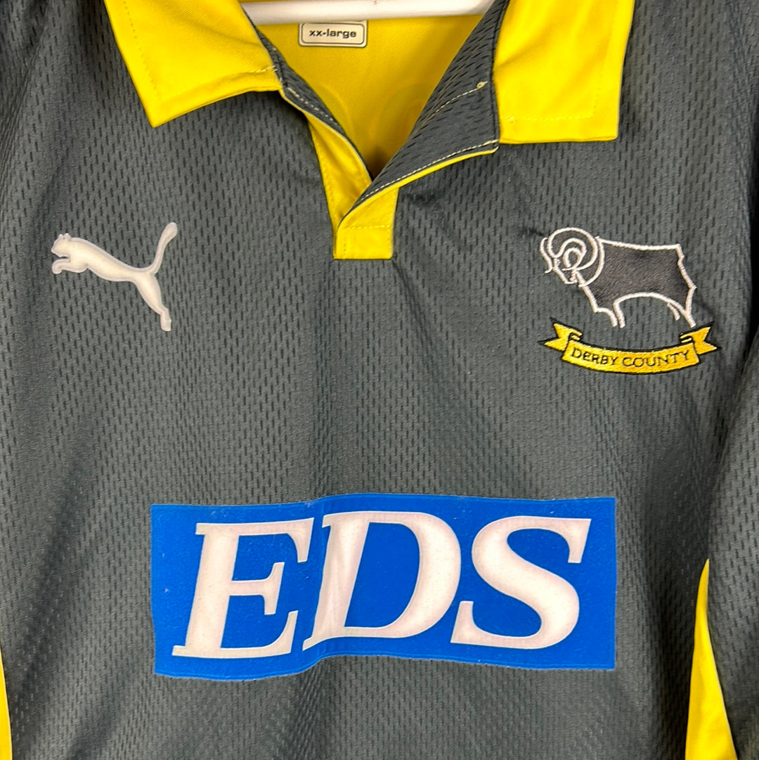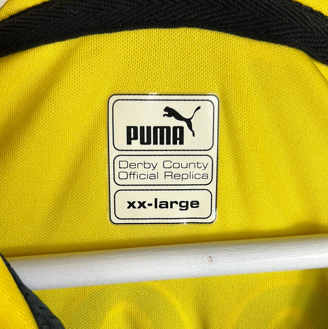 Player Issue Details: The shirt has the correct player size, the same print, and Premier League patches. The front sponsor and Puma logo are printed on the shirt. The Derby County badge is fully embroidered.