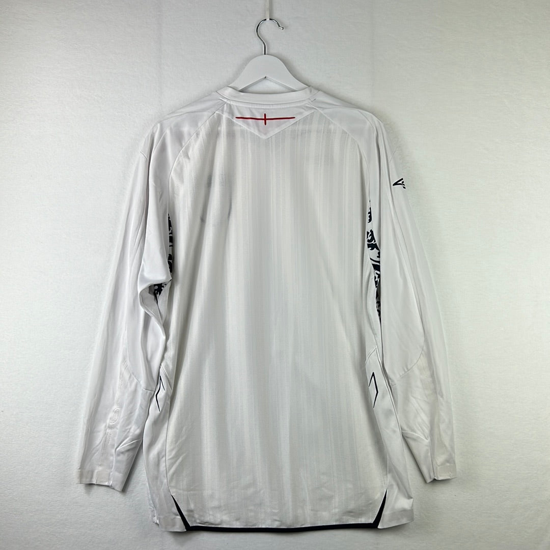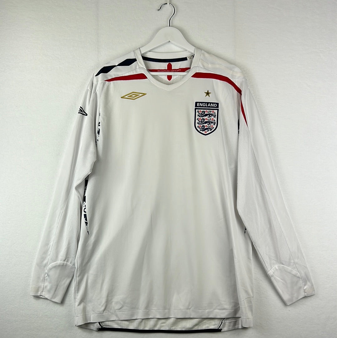 • Red flag print on the neck with "England football shirt by Umbro 2007-2009" across the middle of the flag