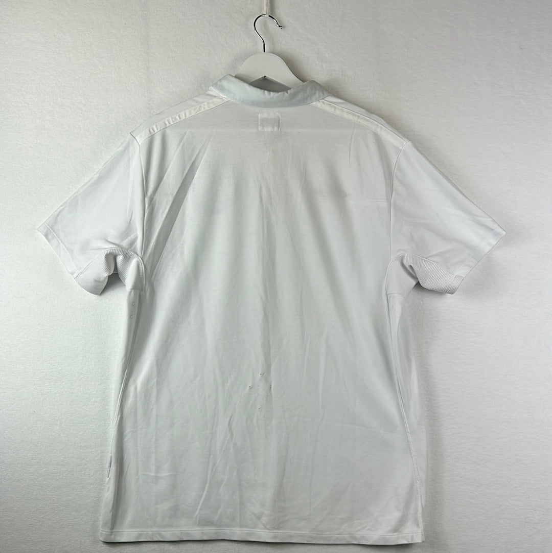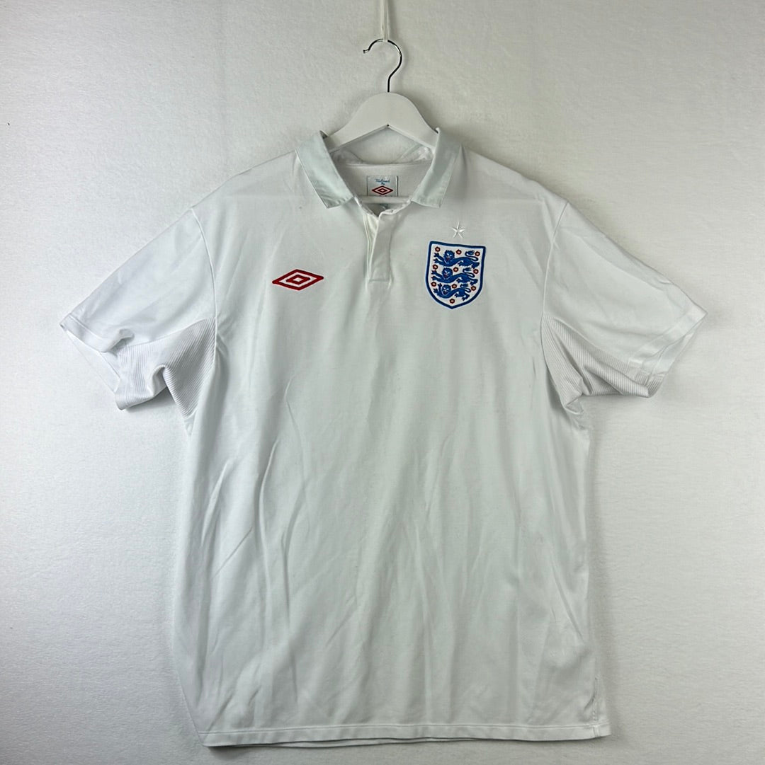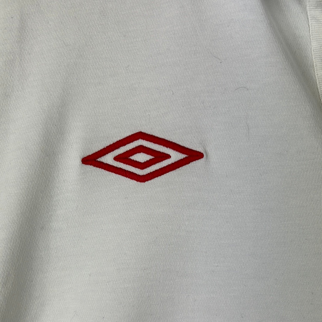 Shirt info: The 2010 home shirt for England. This is part of the tailored by Umbro range from that period. A standard white England shirt with a nice cut and material.