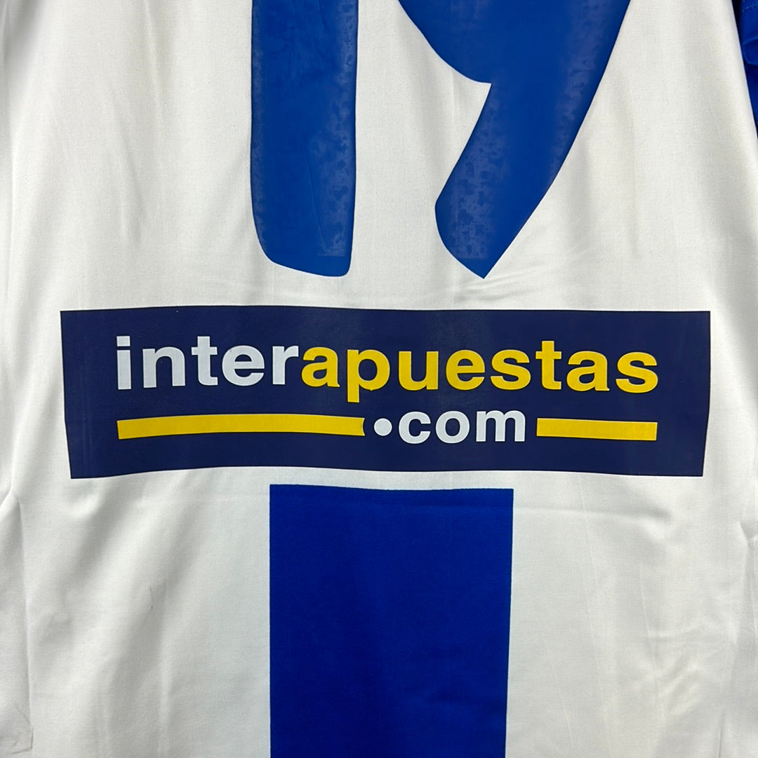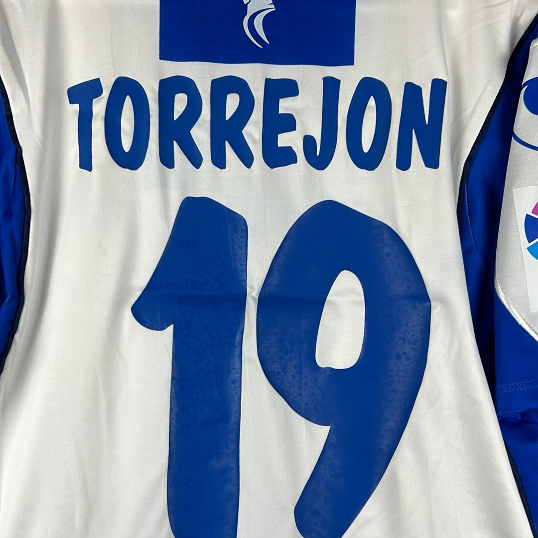 Shirt info: The 2006-2007 Espanyol home shirt worn during the La Liga season. This specific shirt was player issued to Torrejon for the away match vs FC Barcelona on 20/8/2006 in the Spanish Super Cup which they lost 3-0. The shirt features the blue and white vertical stripes of Espanyol. It also has a felt Espanyol badge, while the Ulhsport logo, 'QAUT' sponsor, 'Catalunya' badge and LFP sleeve patches are all printed. 'Torrejon 19' is printed on the back in blue plastic flock.