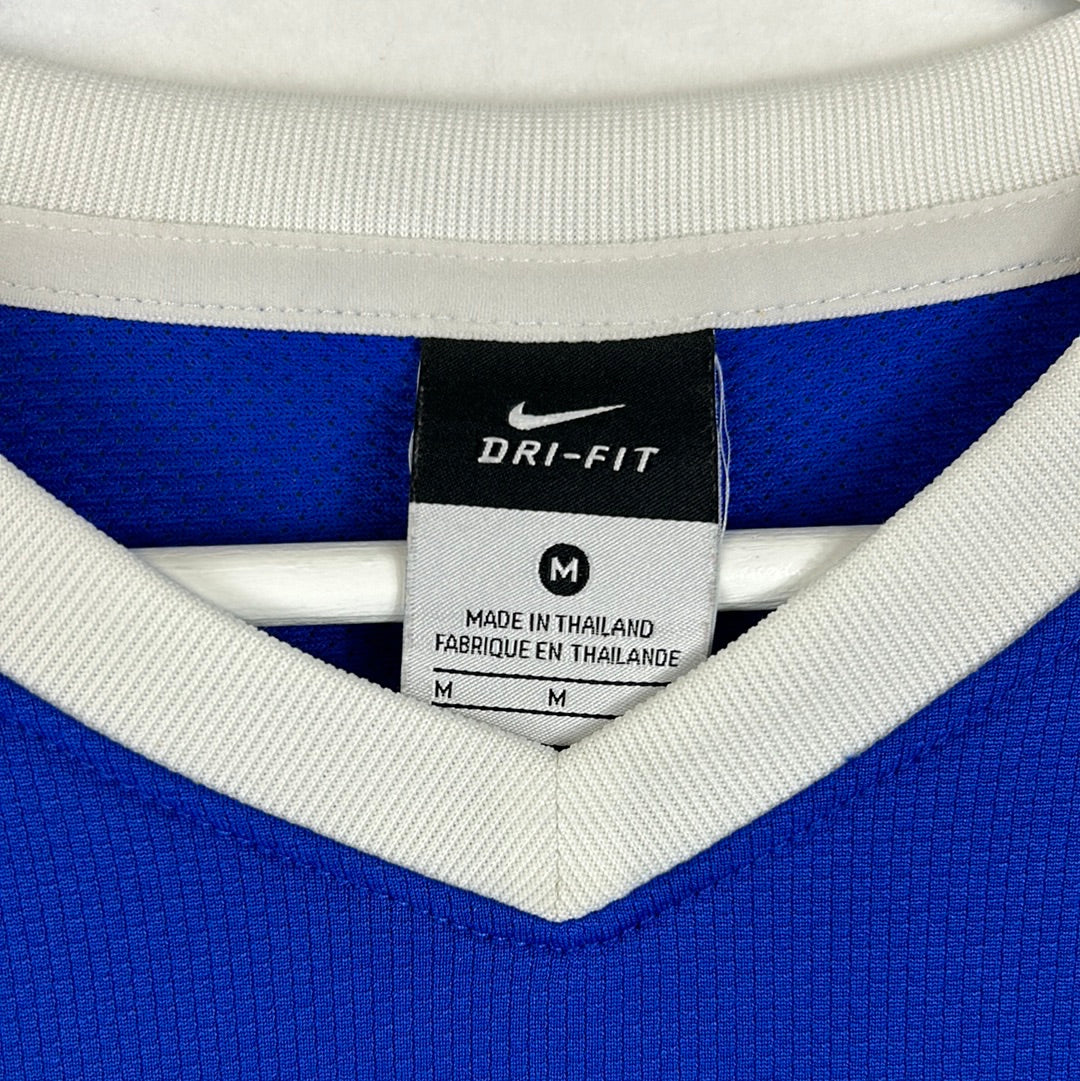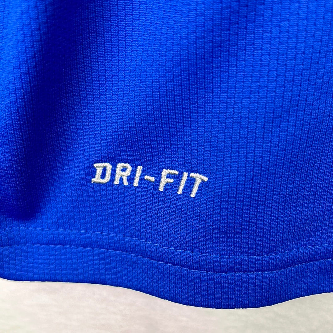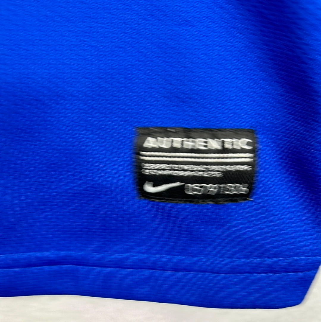 Shirt info: A standard Everton blue home shirt with white collar and cuffs. The shirt has the white Chang beer sponsor and is about as standard an Everton shirt as you can find!