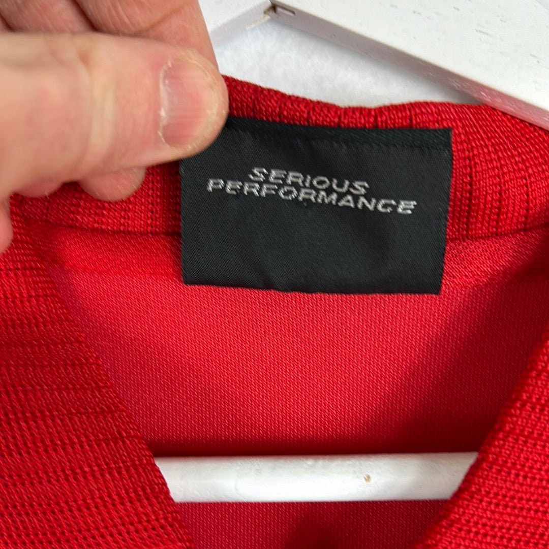 Shirt info: The home shirt for FC Koln in the 2002/2003 season. The Saller made shirt features the centralised logo and felt type badge. This is a nice cut red and white shirt with a red collar.