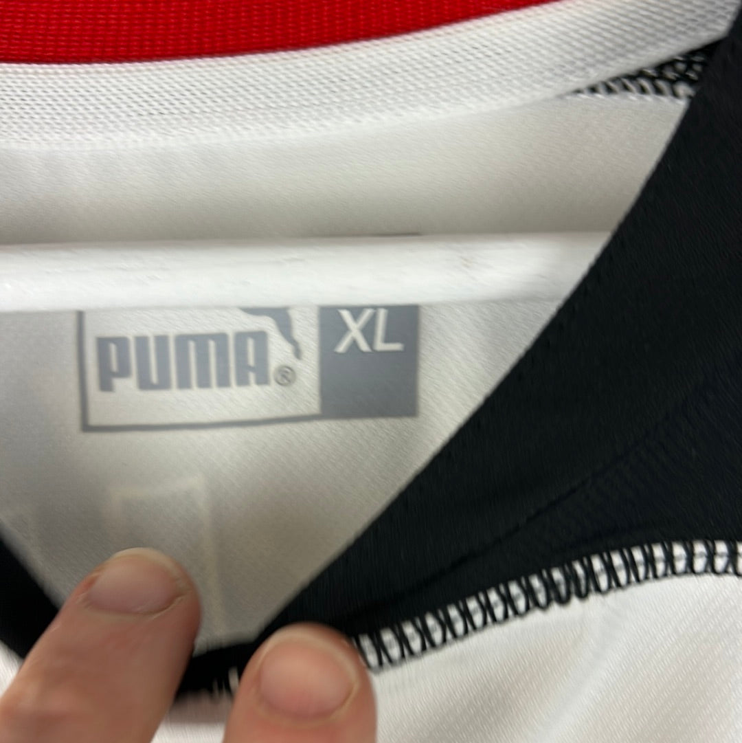 Player Issue Details: A player-issued Puma shirt. This has the larger players print and sleeve patches. The Puma logo is felt.