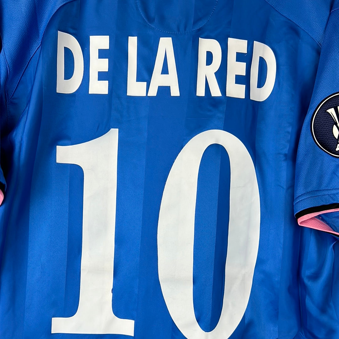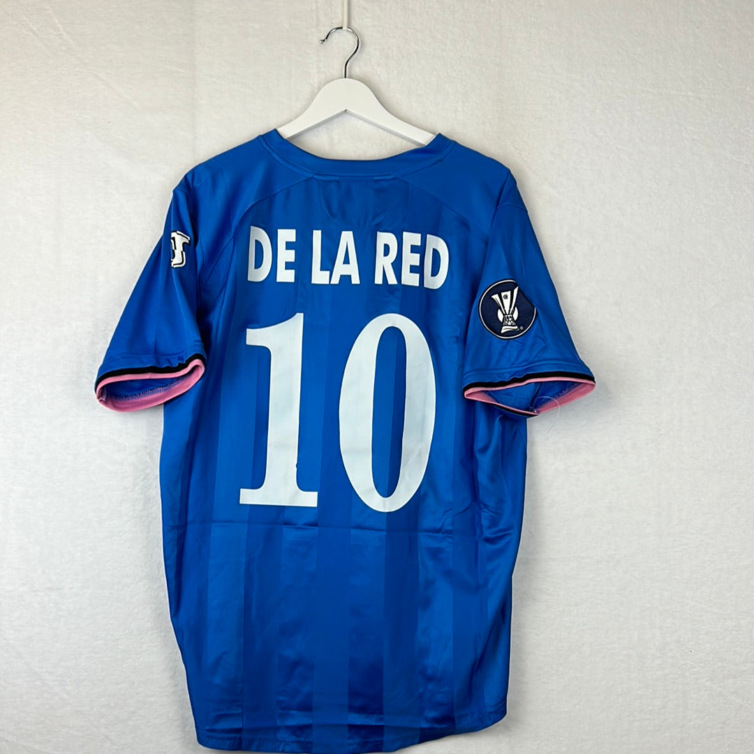Match Worn: The shirt has come to me as a match worn in the 3-3 draw with Bayern in 2008. De La Red was sent off after just 6 minutes into the match. The shirt matches with game and the loose thread on the Joma appears to match his shirt in the short part of the game he played.