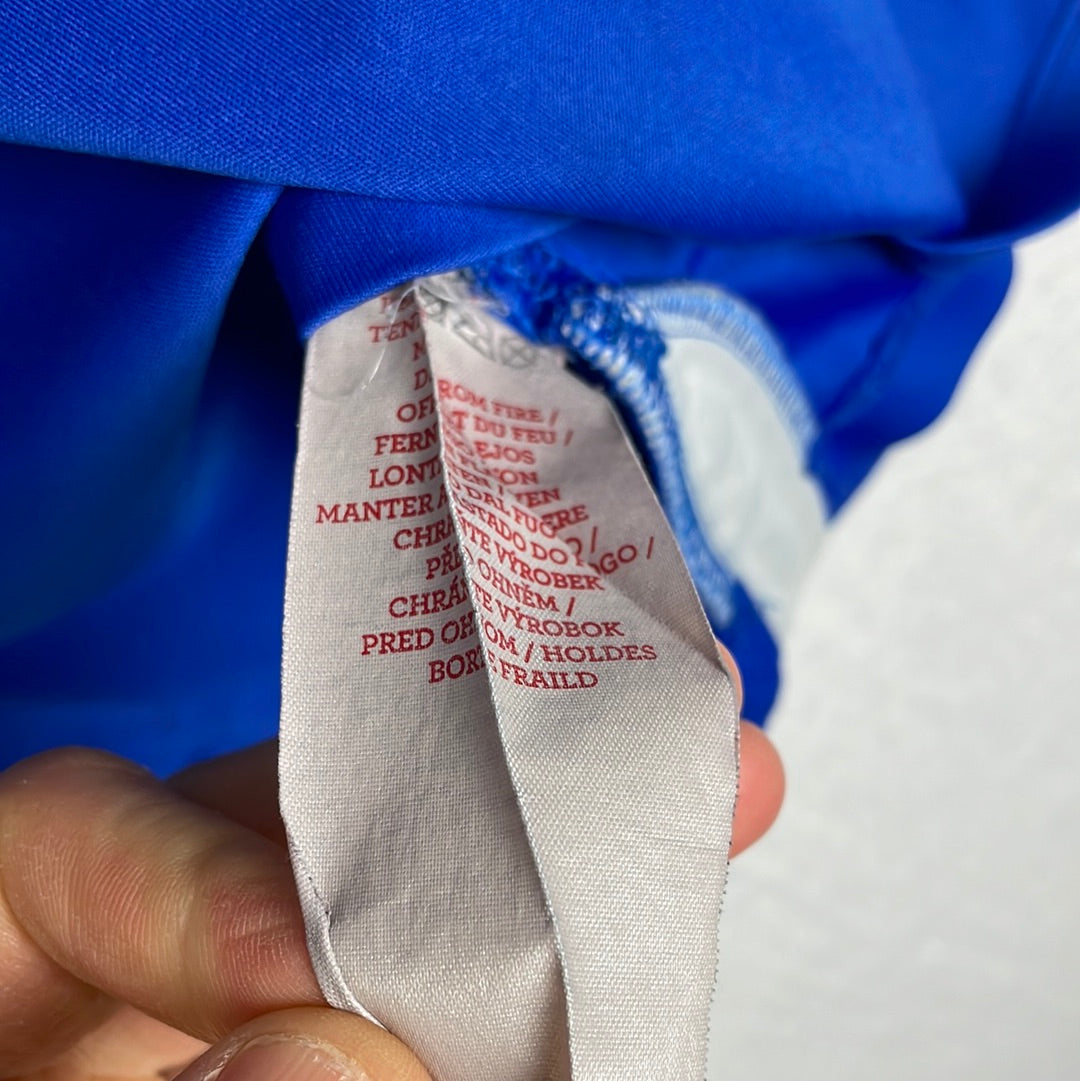 Shirt info: The Rangers home shirt in the 2011/2012 season. This is part of the tailored by Umbro range from that era. The shirts are a more cotton-type material compared to modern football shirts. This is a nice design by Umbro with the patches over the arms.