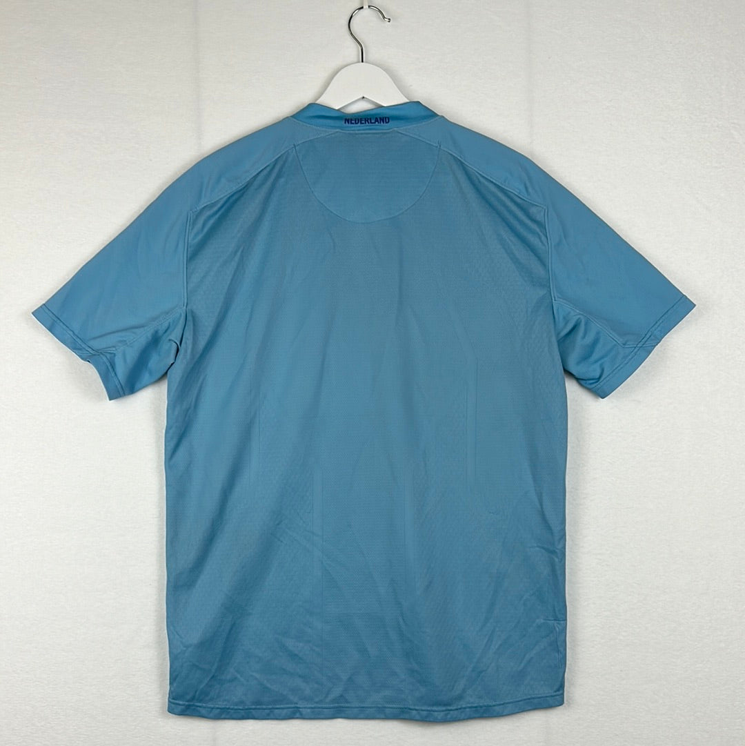 Shirt info: A light blue shirt for the Netherlands away in 2008 and 2009. This has a classic look about it, even though this isn't a colour we'd usually associate with Holland.