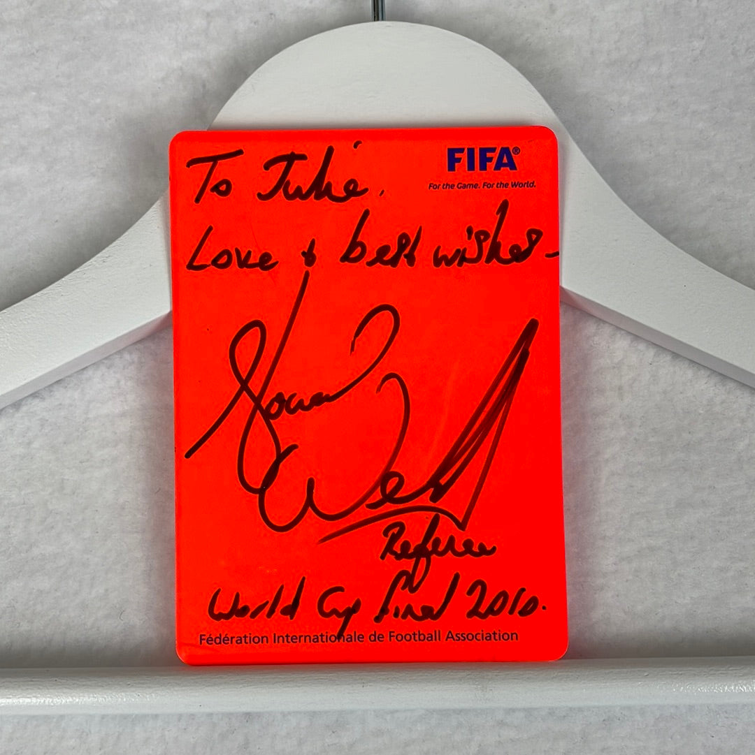 Info: A FIFA red card signed by Howard Webb. No one has been booked on the back of the card.