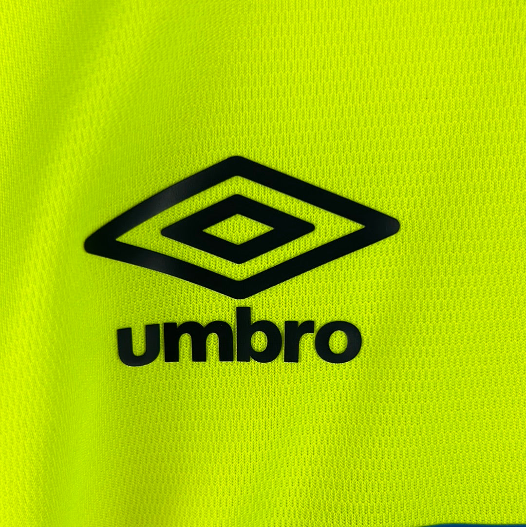 Player Issue Details: The shirt is an Umbro with the correct prints for a Premier League game. It has printed Umbro diamonds on the sleeves.